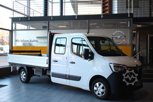 Storage gallery, Airbag driver's side, Platform body, Electrically adjustable and heatable exterior mirrors, Exterior temperature display, Side marker lights, On-board computer, Brake assist, Rev counter, Electric brake force distribution, Cabin filter: Pollen filter, Body/body: Platform double cab, Fuel tank: 80 ltr, Steering column (steering wheel) height-adjustable, Model upgrade (2), Engine 2.3 ltr. - 110 kW dCi Diesel FAP Energy KAT, Wheelbase 4332 mm, Low-emission according to Euro 6d-TEMP emissions standard, Gearshift indicator, Front mud flaps, Seat cover/upholstery: Fabric, Seats in cab: 2nd row 4-seater bench seat, Seats in cab: Height-adjustable driver's seat, Daytime running lights LED, Thermal insulation glazing, Gross vehicle weight 3.50 t