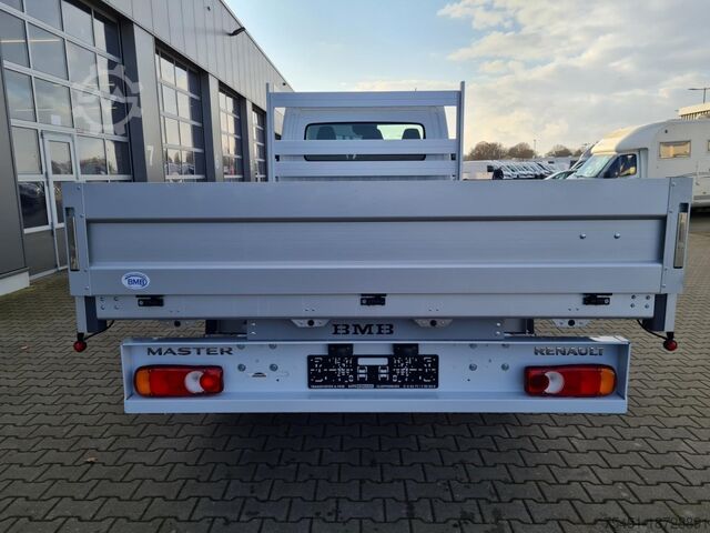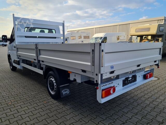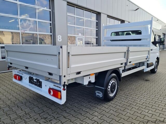 Navigation via mobile phone possibleAir conditioning, central locking with remote control, exterior mirrors electrically adjustable and heated, electric front windows, on-board computer, cruise control, multifunction steering wheel, partition, light and rain sensor, LED daytime running lights, radio with Bluetooth hands-free system, touchscreen, USB interface, Apple CarPlay, Android Auto, heat-insulating glazing, tachometer, driver's side airbag, anti-lock braking system (ABS), traction control (ASR), driver's comfort seat - height adjustable with armrest and lumbar support, automatic start/stop, soot particle filter, service history, immobilizer, side marker lights, outside temperature display, power steering, model update (2), permissible. Total weight 3.50 t, storage box below the platform / body - right, front mud flaps, gearshift point indicator, interior filter: pollen filter, multifunctional double passenger seat, storage gallery, electric brake force distribution, brake assist, height-adjustable steering column (steering wheel), electronic. Electronic Stability Program (ESP), 185 A alternator, body/structure: flatbed with ladder rack, wheelbase 4332 mm, drive type: front-wheel drive, 6-speed transmission