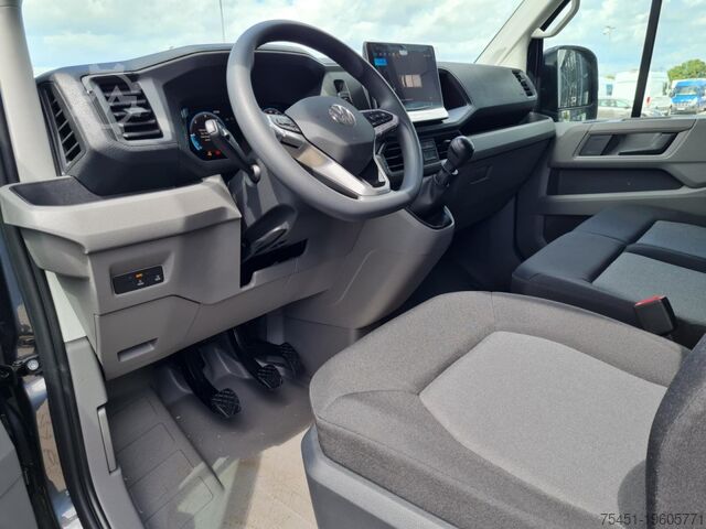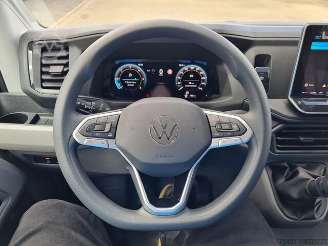 Tow bar up to 3.5 t (available at extra cost), Climatic air conditioning, cab air conditioning, central locking with remote control and interior operation, electrically adjustable and heated exterior mirrors, electric front windows, Multi-Function Display Plus, Driver assistance system: Hill Start Assist, Lane Keeping Assist (Lane Assist), City Emergency Braking Function, Surround Observation System (Front Assist) with City Emergency Braking, Traffic Sign Recognition, Driver Fatigue Detection Sensor, Cruise control system (tempomat) including speed limiter, Speed limiter 135 km/h, multi-function steering wheel, spare wheel with running tyres, rain sensor, daytime running lights, digital radio reception (DAB+), touchscreen, Bluetooth mobile phone interface, multimedia interface 2 x USB (Type C) in front, Mobile online services App-Connect, emergency call system, tyre pressure monitoring system, heat-insulating glazing, Storage Package 2, driver airbag, driver/passenger airbag – passenger airbag can be deactivated, anti-lock braking system (ABS), electronic stability program (ESP), light assistant (Coming Home - Leaving Home), start/stop engine system, particulate filter, full service history, electronic immobilizer, headlight range adjustment, onboard tools, electro-mechanical power steering, paint finish: Indium grey, metallic, seat belt warning system front (visual and acoustic), rear (visual), Cab seats: Dual passenger seat with storage/compartment and backrest foldable as table, front bumper in grey with insert in vehicle colour, Basic driver assistance package, paint finish: metallic, registered as truck, storage: 2 DIN slot under roof lining in front, cabin interior lights: reading light in front, Permissible total weight 3.50 t, radiator grille with upper chrome strip, exterior mirror convex left, exterior mirror convex right, twin headlights, LED turn signal in exterior mirrors, automatic driving light control, side marker lights, audio system Composition Colour (radio / SD card interface / USB), cab floor covering: rubber, A-pillar grab handles, lockable glove compartment, rear compartment/load area seats: 1st row 4-seater bench (double cab), 2 folding remote key fobs, interior lights in cab: LED, twin-tone horn, driver assistance system: brake assist (HBA), reinforced front axle, adjustable steering column, SCR system (AdBlue technology), body/superstructure: platform/dropside with double cab, wheelbase 4490 mm, drive type: front-wheel drive, 6-speed gearbox, Over 150 vans and buses in stock. Financing or leasing possible via Santander Consumer Bank, Bank 11, or Auto Europa Bank, we are happy to advise you. This offer is non-binding, no guarantee for equipment details. The specified features must be checked separately if necessary. Changes, errors, and prior sale reserved. Delivery available at extra cost. Export license plates can be arranged on site. We accept trade-ins of your old vehicle. Retrofit options available for: - Tow bars up to 3500 kg - Auxiliary heaters - Rear view camera screen and/or navigation via smartphone (Android Auto) - Reversing system with rear camera - Workshop interiors - Cruise control - Retrofit of a tail lift (LBW) and other customized solutions for your business requirements available at extra cost.