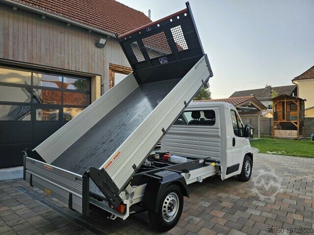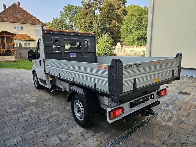 Fiat Ducato MAXI three-way tipper 2.2 MJ 132 kW / 180 HP POWER EU New vehicle in stock, available immediately Latest 2025 model of Series 10 (9.2)! Syncom: 5.2 MAXI version with 16-inch tires and large brake system Stable three-way tipper from Scattolini with steel floor and aluminum side panels Loading area dimensions: 3,080 x 2,030 x 400 mm (L x W x H) Gross vehicle weight: 3,500 kg 025 Air conditioning 2PX 5'' infotainment system with color display, DAB radio, Bluetooth interface 316 Rear-view camera 132 Center armrest and lumbar support for driver's seat 173 Crepe black seat covers NHR Cruise control + speed limiter 041 Electrically adjustable and heated exterior mirrors 4B0 Cup and card holder 077 Double-leaf rear axle spring 293 Front double passenger seat with table 786-980 Spare wheel in driving specification with on-board toolkit 738 Fuel tank 90 liters 742 Rear cross member with tail lights 4HH Side marker lights 475 Rear window protection + ladder rack 692 Daytime running lights 806 Heated fuel filter 5EM Darkened headlights 500 Driver airbag 502 Passenger airbag 5F4 Safety package Electronic stability control: - Crosswind assist - Trailer stability control - Post collision braking - Rollover prevention - Traction control (ASR) - Hydraulic brake assist (HBA) - Hill start assist - Adaptive load control (LAC) Safety kit: - Emergency brake assist (pedestrian and cyclist detection) - Lane departure warning - Traffic sign recognition - Drowsiness detection - Intelligent speed limiter 5EM Darkened headlights 4DH 980 Full-size spare wheel with on-board tools 01P Acoustic reverse warning for pedestrians 5DE Start & stop automatic 0AA Ecopack with stop&start system incl. activation switch, intelligent alternator (200 A), electric fuel pump 806 Heated fuel filter Towbar incl. 13-pin electrical kit We are happy to provide you with a financing or leasing offer. Optional: Set of complete winter wheels on steel rims 215/75R 16 116/114R Nexen W