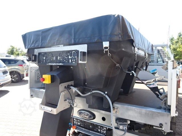* Conversion to 3-way tipper: hot-dip galvanized steel lightweight profiles – Drop-down side panels – Lashing eyes integrated into floor frame – 4 ball-bearing tipping brackets with 2 removable bolts for determining tipping direction – Hydraulic cylinder operable from cab – Acoustic warning signal when tipper bed is “not down” – LED tail lights