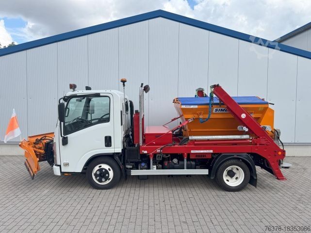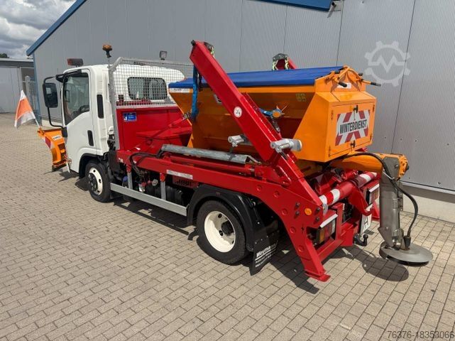 ISUZU NMR with skip loader, wedge-vario snowplow blade, and silo spreader