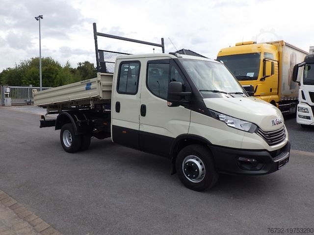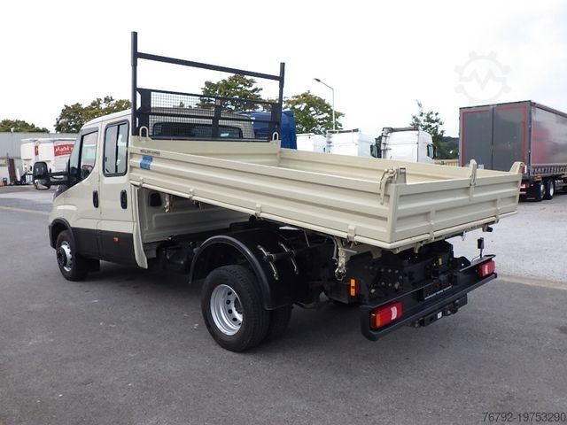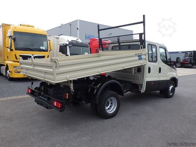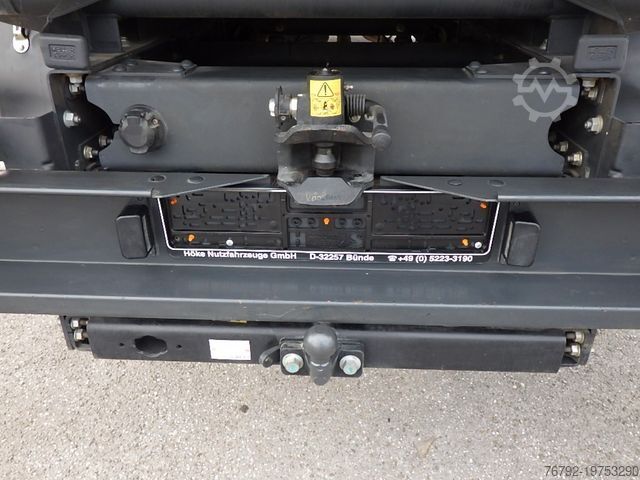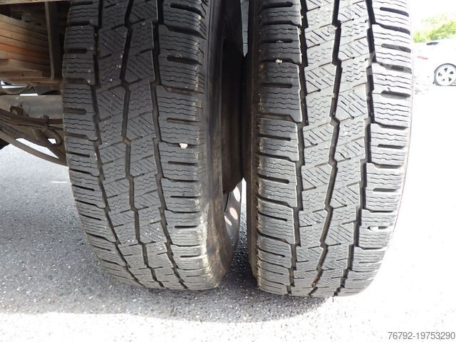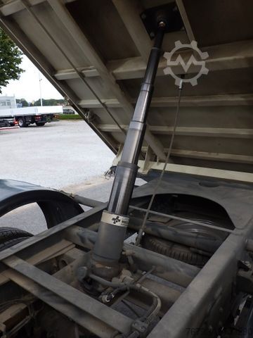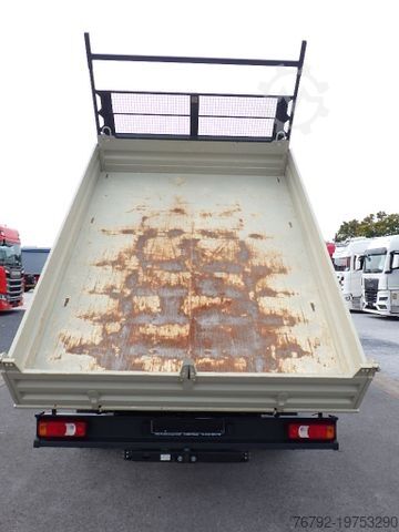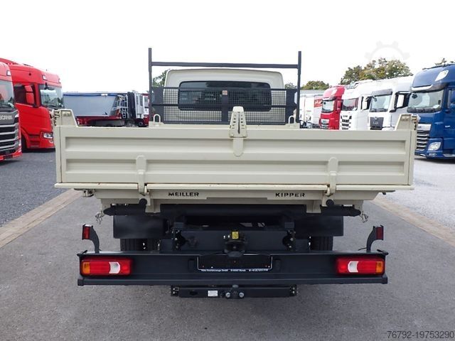 Meiller steel three-way tipper, internal loading dimensions 3100 x 2200 x 350 mm, 4 pairs of recessed lashing eyes in the floor, rear load protection grille at the cab, cab with double crew compartment, 4 doors and 7 seats, comfort driver’s seat, driver airbag, double passenger bench seat, air conditioning, electric windows (2-way), electrically adjustable and heated exterior mirrors, multifunction steering wheel, maintenance interval display, radio with DAB+ and Bluetooth, central locking with remote control, cruise control, ESP, lane departure warning system, 6-speed manual transmission, 100-liter fuel tank, 24-liter AdBlue tank, digital tachograph, daytime running lights, spare wheel carrier under the end of the frame incl. jack, rear axle differential lock, gross vehicle weight 6,000 kg / payload 2,510 kg, wheelbase 3,750 mm, second owner, regularly serviced, good overall condition, ORIGINAL mileage (verifiable), Euro 6E engine, low noise, German vehicle with German documents, sale only to commercial customers! All information without guarantee! Subject to errors and prior sale!
