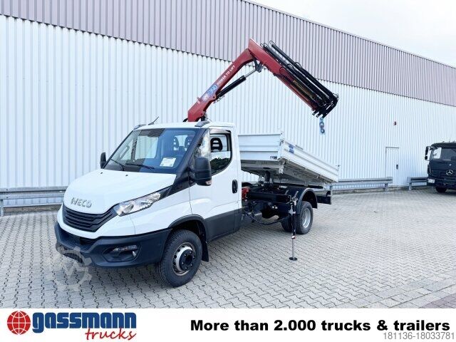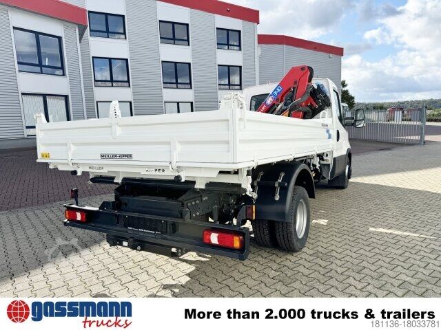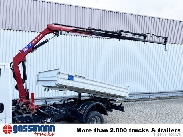 Wheelbase: 3750 mm Body: Meiller 3-sided tipper body with HMF 340-K3 crane, remote control, differential lock on rear axle, oil pan protection, cruise control, electronic parking brake, trapezoidal spring with auxiliary spring on rear axle, Traction Plus with hill descent assistant, TollCollect preparation, air conditioning, Hydrocar 2512 auxiliary drive.