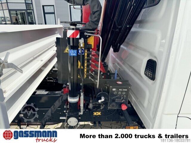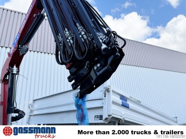 Vehicle location: Bovenden, steel superstructure, registration number house, double bench seat, rear window, electric mirror, electric window left, electric window right, air conditioning, cruise control, switch 6, ABS (anti-lock braking system), traction control (ASR), auxiliary drive, differential lock, fog lights, leaf suspension, trailer coupling ball head, lashing eyes, U-protection, swing flaps, crane behind house, emergency stop, grab control, foldable, 2-point outrigger mechan, radio remote control, 3x hydr. extensions, green environmental sticker