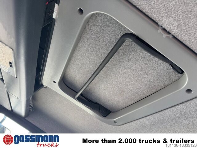 Vehicle location: Bovenden, steel body, Kz. Haus, double bench seat, rear window, electric mirror, heated mirror, electric window left, electric window right, sun visor, switch 6, ABS (anti-lock braking system), constant throttle, auxiliary drive, differential lock, leaf spring suspension, tow bar ball head, tow bar air+light, low noise G1, lashing eyes, U-protection, pendulum flaps, roof hatch, green environmental badge