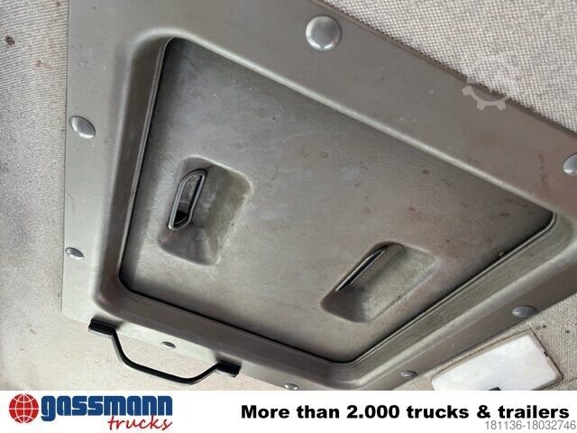 Vehicle location: Bovenden, steel superstructure, registration number house, 1x comfort seat, double seat bench, seat heating, rear window, electric mirror, heated mirror, switch 6, ABS (anti-lock braking system), power take-off, differential lock, rotating beacon, leaf suspension, air-light-hydraulic tow bar, low-noise G1, lashing eyes, U-protection, pendulum flaps, roof hatch, space for crane behind house, red environmental badge
