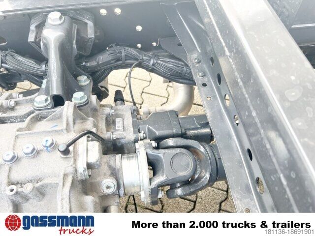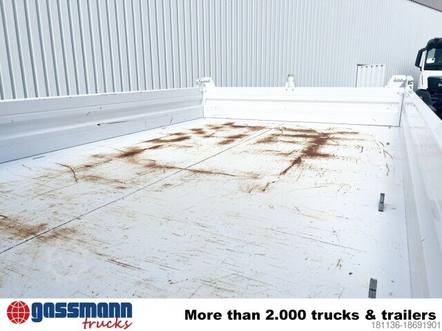 Wheelbase: 3020 mm. Body: Meiller 3-way tipper, foldable steel side walls, spring-assisted front axle (4.1 t), rear axle (325 mm), hypoid (6.2 t), differential lock on rear axle, electronic braking system with ABS and ASR, disc brakes on front and rear axles, condensate monitoring for compressed air system, stabilizer bar, under frame, rear axle, standard cockpit. Pollen filter, ClassicSpace, rain and light sensor, daytime running lights, High Performance Engine Brake, NA MB 60-1c, pump, Meiller pump, 5-piston, type 254/1, tipper body, 4 mm floor, lashing recesses in the tipper body floor, Electronic Stability Control (ESP), Lane Keeping Assist, Active Brake Assist, gross vehicle weight 21,000 kg.