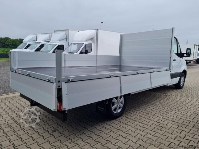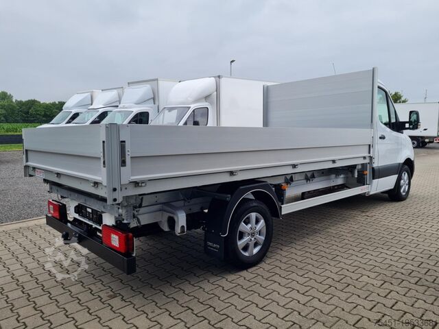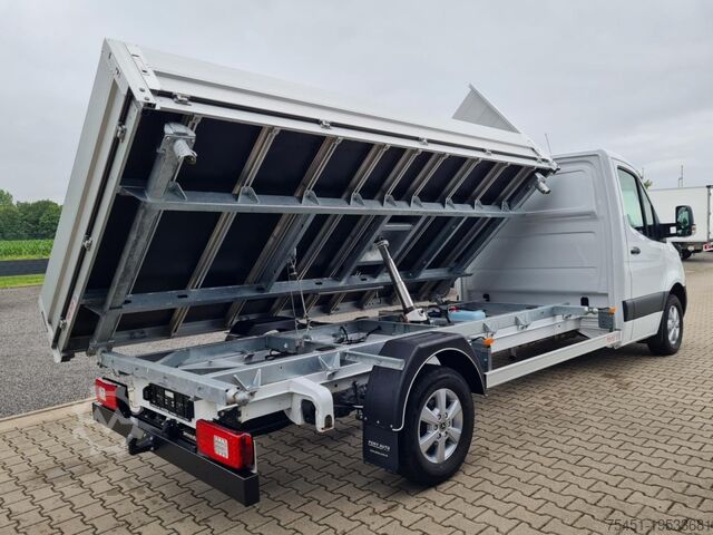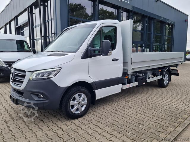 Automatic climate control (Tempmatic), keyless start, electrically adjustable and heated exterior mirrors (both sides), electric windows (front), driver assistance system: active lane keeping assist, driver assistance system: traffic sign recognition, driver assistance system: Attention Assist (fatigue detection sensor), cruise control, multifunction steering wheel, steering wheel and gearshift lever covered in leather, spare wheel with road tires, driver assistance system: high beam assist, daytime running lights, LED high performance headlights, fog lights with cornering function, 6.5x16 alloy wheels (6-spoke), DAB tuner (digital radio reception), MBUX multimedia system (10.25" touchscreen with navigation), Bluetooth hands-free system, centrally located USB port under the dashboard (charging only), voice control system (Linguatronic), WLAN hotspot, Mercedes-Benz emergency call system, heat-insulating glazing (windscreen with topband filter), driver's airbag, anti-lock braking system (ABS), electronic stability program (ESP), cab seats: driver's seat with lumbar support, start/stop engine system, particle filter, immobiliser, wireless charging tray for smartphone (inductive charging), headlight range adjustment, outside temperature display, paint: ARCTIC WHITE, 3-way tipper, fuel filter with water separator, cab seats: driver's seat box - low, comfort lighting in passenger/cargo area, electric parking brake, front cup holders, fuel tank: main tank 93 L, 12V socket in cab, chrome grille, cab seats: comfort passenger seat, additional electric air heater, jack, rear combination lights partially LED, all-weather floor mats, grille frame in vehicle color, instrument cluster with color display, acoustic package, additional heater fuel sender, extended exterior mirror base left/right, front mud flaps, interior rear-view mirror, terminal strip for electric connections (driver's seat box), driver assistance system: active brake assist, armrest – driver and passenger door, heavy-duty suspension, folding lid for storage compartment, folding lids for left/right storage compartments, reinforced front axle, 1-DIN slot below headliner, cab seats: comfort suspension driver’s seat, spare wheel carrier under rear frame incl. jack, single-pole battery master switch, 230V socket in cab, seat belt system with warning indicator (passenger side), truck registration, permitted gross weight 3.5 t, external noise reduction measures, tow hook at rear, automatic headlights, adaptive brake light, side marker lights, communication module (LTE) for digital services, maintenance interval display (Assyst), washer fluid level indicator, storage compartment under dashboard passenger side, headliner in cab, cab seats: passenger seat with armrest, cab seats: driver’s seat with armrest, seat belt system with warning indicator (driver's side), overhead storage compartment above windscreen, electronic brakeforce distribution (EBD), suspension: stabilisation stage I, mechanically adjustable steering column, traction control system (ASR), driver assistance system: crosswind assist, 92 Ah AGM battery, 200 A alternator, body/build: flatbed, wheelbase 4325 mm, drive type: rear-wheel drive, 6-speed manual transmission (Eco Gear), over 150 vans and buses in stock. Financing or leasing possible through Santander Consumer Bank, Bank 11 or Auto Europa Bank, we are happy to advise you. This offer is non-binding, no guarantee for equipment details.