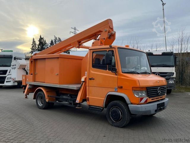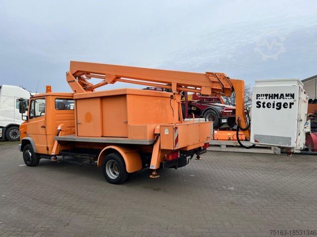 ----Structure: Ruthmann telescopic work platform TL 180 (built in 1997), lifting height approx. 16 mtr, working height approx. 18 mtr, swivel range approx. 450 degrees, max. lateral reach approx. 10.45 mtr, work basket load capacity 200 kg/2 people, insulation against 1000 volts, 4-point support. 230 V socket. Total structure height retracted approx. 3,300 mm. Operating hours read: 9,853 h