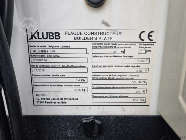 * Aerial work platform: KLUBB K26