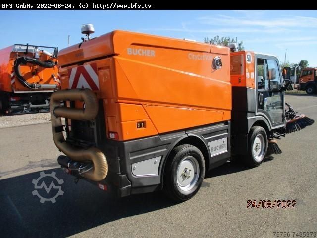 VM diesel engine R 754 EU6D, 270 Nm torque, hydrostatic drive, infinitely variable speed 0-50 km/h when driving, 0-15 km/h when working, third front disc brush, quick-change brush system, high-pressure water system with shaft cleaning, 12 V electrics, 95 Ah battery, radio-CD with Bluetooth, reversing camera, top work lights, air conditioning, CSense 10.1 screen, brush lighting, direction of rotation n.off, independent wheel suspension, gross volume 2.0 m3, hydraulically tiltable and lockable, 1 side brush each on the left and right. and front disc brushes - all d=800 mm, fresh water tank 275 l, service water 150 l, sweeping width 2660 mm, side adjustment of both side brushes (min. 1760 mm up to max. 1970 mm)