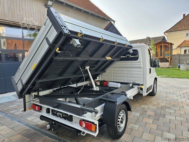 Fiat Ducato MAXI Three-Way Tipper 2.2 MJ 132KW/180HP POWER EU New vehicle in stock, available immediately Latest 2025 model of Series 10 (9.2)! Syncom: 5.2 MAXI version with 16-inch tires and large braking system Robust three-way tipper by Scattolini with steel floor and aluminum side walls Cargo area dimensions: 3,080 x 2,030 x 0.400 mm (L x W x H) Gross weight: 3,500kg 025 Air conditioning 2PX 5'' infotainment system with color display, DAB radio, Bluetooth interface 316 Rear-view camera 132 Center armrest and lumbar support for driver's seat 173 Black Crepe seat covers NHR Cruise control + speed limiter 041 Exterior mirrors electrically adjustable and heated 4B0 Cup and card holder 077 Dual-leaf spring rear axle 293 Dual passenger bench seat with table 786-980 Spare wheel in road-ready condition with tool kit 738 90-liter fuel tank 742 Rear cross member with taillights 4HH Side marker lights 475 Rear window guard + ladder rack 692 Daytime running lights 806 Heated fuel filter 5EM Tinted headlights 500 Driver airbag 502 Passenger airbag 5F4 Safety package Electronic stability control: - Crosswind assist - Trailer stability control - Post collision braking - Rollover prevention - Anti-slip regulation (ASR) - Hydraulic brake assist (HBA) - Hill start assist - Adaptive load control (LAC) Safety kit: - Emergency brake assist (pedestrian- and cyclist-detection) - Lane departure warning - Traffic sign recognition - Drowsiness assistant - Intelligent speed assistant 5EM Tinted headlights 4DH 980 Full-size spare wheel with tool kit 01P Acoustic reversing warning for pedestrians 5DE Start & Stop automatic system 0AA Ecopack with Stop&Start system incl. activation switch, intelligent alternator (200 A), electric fuel pump 806 Heated fuel filter Towbar incl. 13-pin E-set Financing or leasing offers available on request. Optional: set of complete winter wheels on steel rim 215/75R 16 116/114R Nexen W