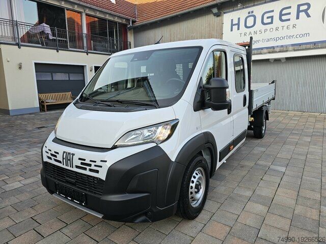 Fiat Ducato DOKA MAXI Three-way Tipper L5 (now L4 in Series 10 9.2) 2.2 MJ 103KW/140HP EU New vehicle in stock, immediately available Latest 2025 model of Series 10 (9.2)! Syncom: 295.C93.2 MAXI version with 16-inch tyres and large brake system Robust three-way tipper by Scattolini with steel floor and aluminium side panels Cargo area dimensions: 3,080 x 2,030 x 0.400 mm (L x W x H) Gross vehicle weight: 3,500 kg Double cab with 7 seats 025 Air conditioning 2PX 5'' infotainment system with colour display, DAB radio, Bluetooth interface 316 Reversing camera 132 Centre armrest and lumbar support for driver's seat 173 Black crepe seat covers NHR Cruise control + speed limiter 041 Exterior mirrors electrically adjustable and heated 4BJ Plastic wheel arch cover 4B0 Cup and card holder 077 Double leaf spring rear axle 293 Passenger double bench with table 786-980 Spare wheel with standard tyres and toolkit 738 90-litre fuel tank 742 Rear cross member with taillights 4HH Side marker lights 475 Rear window guard + ladder rack 692 Daytime running lights 806 Heated fuel filter 5EM Darkened headlights 500 Driver airbag 502 Passenger airbag 5F4 Safety package Electronic Stability Control: - Crosswind assist - Trailer stability control - Post Collision Braking - Rollover prevention - Traction control (ASR) - Hydraulic brake assist (HBA) - Hill start assist - Adaptive load control (LAC) Safety kit: - Emergency brake assist (pedestrian and cyclist detection) - Lane departure warning - Traffic sign recognition - Drowsiness warning - Intelligent speed assistant 5EM Darkened headlights 4DH 980 Full-size spare wheel with toolkit 01P Acoustic pedestrian reversing warning 5DE Start & Stop automatic 0AA Ecopack with Stop&Start system including activation switch, intelligent alternator (200 A), electric fuel pump 806 Heated fuel filter Tow bar incl. 13-pin wiring kit We are happy to offer you a financing or leasing proposal.