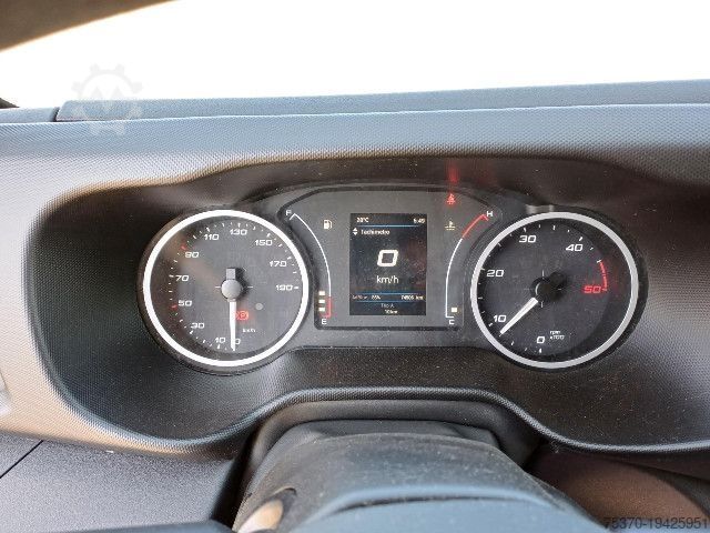 Tare weight: 3,000 kg, Permissible total weight: 3,500 kg, Cargo area (L W H): 4,450 mm x 2,150 mm x 2,320 mm, Cargo volume: 22 m³, Fabric seats, Leaf suspension, Electronic Stability Program (ESP), Passenger bench seat, Radio, Digital radio reception DAB, Parking assistance, Adjustable steering column, Driver lumbar support, Electric windows, Fog lights, Central locking with remote control, Tinted windows, Tire repair kit, Daytime running lights, Speed limiter, Box body with sliding tarpaulin + rear doors, NEW BERTACCHI BODYWORK.
