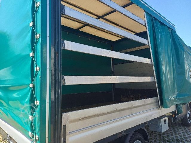 Kerb weight: 2575kg, Permissible total weight: 3500kg, Loading area (L W H): 3,720 mm x 2,143 mm x 2,308 mm, Loading volume: 18 m³, Fabric seats, Leaf spring suspension, Electronic stability program ESP, Passenger bench seat, Radio, Digital radio reception DAB, Adjustable steering column, Driver’s lumbar support, Electric windows, Fog lights, Central locking with remote control, Tinted glass, Fixed rear underrun bar, Spare wheel, Daytime running lights, Speed limiter, DROPSIDE BODY WITH SLIDING TARPAULIN, AIR CONDITIONING, CRUISE CONTROL