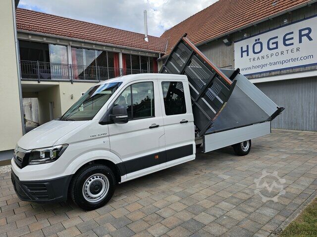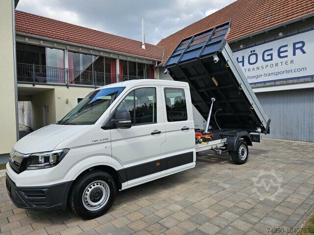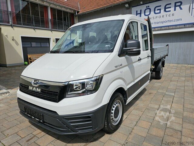 MAN TGE 3.140 DOKA Tipper L3 2.0 TDI 103KW/140HP New Model 2025 - Facelift Vehicle expected for 07.07.2025 (sample images L4) Scattolini three-way tipper with ladder rack and cab protection Cargo area dimensions: 2,630 x 2,040mm (L x W) Wheelbase: 3,640mm Gross weight: 3,500kg Paint: 638EA Candy White 631ZK Climatic air conditioning in driver's cabin 632NJ MAN Media Van - Navigation via Android Auto or Apple Car Play 637CL Digital radio reception (DAB+) 632RE Digital instrument cluster - virtual cockpit 632OE Multifunction steering wheel 632PC Speakers front and rear 637LC Bluetooth phone preparation 635PE Keyless Go 630LU Emergency brake assist 631EK Front and rear parking assistance 631RF Cruise control 632J B Traffic sign recognition 632RM Attention and drowsiness warning 636MB Active lane-keeping assistant 636OC Intelligent speed assistant 630EC Driver and passenger airbags, with passenger airbag deactivation 639HK Rear window package 634PD 'Comfort' seat left 634RH Dual passenger bench seat right, with storage compartment and foldable center backrest 631GG Four-seater bench in the second seat row 631BH Suspension, damping, and stabilization package 4 637IB Reinforced front axle (2,100kg load capacity) 633KD Central wheel cover 633YB Spare wheel (steel rim) with road tires 633YK All-season tires 639HU Spare wheel with road tires, steel wheel, as well as on-board tools and jack 633RK Tire pressure monitoring system 631IJ Daytime running light control with assistant light 635KL Windshield wiper interval control with light and rain sensor 635AC Side marker lights 631YC Rear window 631MB Additional interior noise reduction measures 632FK Auto-dimming safety interior mirror 630GB Electrically adjustable and heated exterior mirrors 630EM Roof gallery with storage compartments, two DIN slots, and reading light 635AL 2 remote keys 635PA Central locking with remote control 630BN Hill start assist 631UB Glove compartment with lockable flap, illuminated 630KC Left exterior mirror convex, with integrated LED indicator