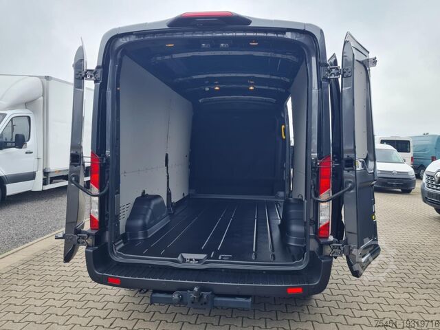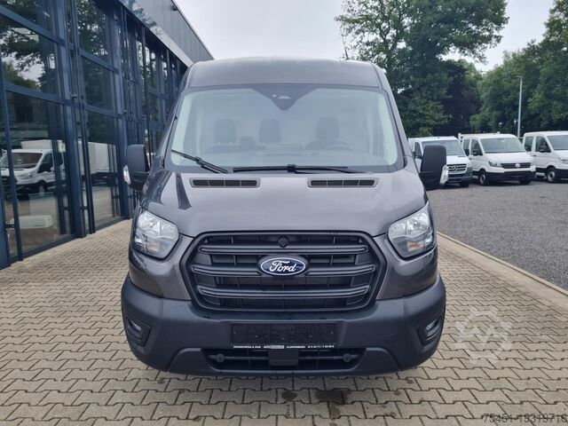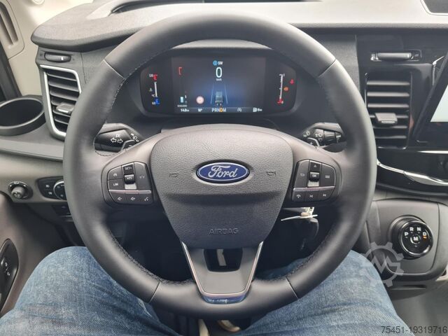 Tow bar up to 3.5 t (at extra cost), navigation via mobile phone, torque converter automatic transmission (8-speed), automatic climate control, trailer coupling, central locking with remote control, electrically adjustable and heated exterior mirrors, electrically folding exterior mirrors, electric windows, on-board computer, digital radio reception (DAB+) with multifunction display, hill start assist, lane keeping assist with driver fatigue detection sensor, emergency brake assist, cruise control, multifunction leather steering wheel, front and rear parking sensors, reversing camera, partition wall, full-size spare wheel, summer tires, heated windscreen, light sensor, wipers with rain sensor and adjustable interval, daytime running lights, fog lights, radio with Bluetooth hands-free system, USB interface, Apple CarPlay, Android Auto, heat-insulating glazing, storage package, tachometer, driver airbag, anti-lock braking system (ABS), electronic stability program (ESP), comfort seats, center armrest, Seat Package 18A: driver's comfort seat - height-adjustable with armrest and lumbar support, start/stop system, diesel particulate filter, full service history, sliding side door loading/passenger compartment on the right, electronic immobilizer, headlight range adjustment, position lights, outside temperature display, power steering, paint: Magnetic Grey, metallic, 13-pin trailer socket, trailer stability program (TSA), load compartment protection package, load compartment/FG compartment floor: vinyl, compartment lining: high, front mud flaps, headlight assistant with day/night sensor, intelligent acceleration control, manual DPF regenerator, electric parking brake, LED load compartment light, LED rear upper exterior lights, increased front axle load to 1.85 t, overhead storage in driver's cab, Technology Package 2, audio/radio remote control on steering wheel, docking station (MyFord Dock), 4 speakers, FordPass Connect incl. eCall, leather gear lever knob, dual passenger seat, permissible gross weight 3.50 t, body variant: medium-high roof, radiator grille with chrome trim, integrated rear step, integrated side indicators in exterior mirrors, cornering light in headlamp, rear mud flaps, roll stability control (RSC), heating with recirculation, additional electric heater, My Key (2nd vehicle key programmable), rear wing doors with increased opening angle (270 degrees), entry lighting, 10 tie-down rings, electronic brake-force distribution (EBD), steering column (steering wheel) height/length adjustable, electronic traction control, crosswind assist, Trend trim, body/build: high-cube van, wheelbase 3750 mm, drive type: front-wheel drive. Over 150 vans and buses in stock. Financing or leasing possible via Santander Consumer Bank, Bank 11 or Auto Europa Bank. We are happy to advise you. This offer is non-binding, no guarantee for equipment details. Listed features may need to be verified separately. Subject to change, error, and prior sale. Delivery available at extra cost. Export license plates available on site. Trade-in of your old vehicle possible. Retrofitting of: - Tow bars up to 3500 kg possible - Auxiliary heaters - Screen for reversing camera and/or navigation via mobile phone (Android Auto) - Reversing system with rear camera - Workshop equipment - Cruise control - Retrofitting a tail lift and further individual solutions for your business needs possible at extra cost.