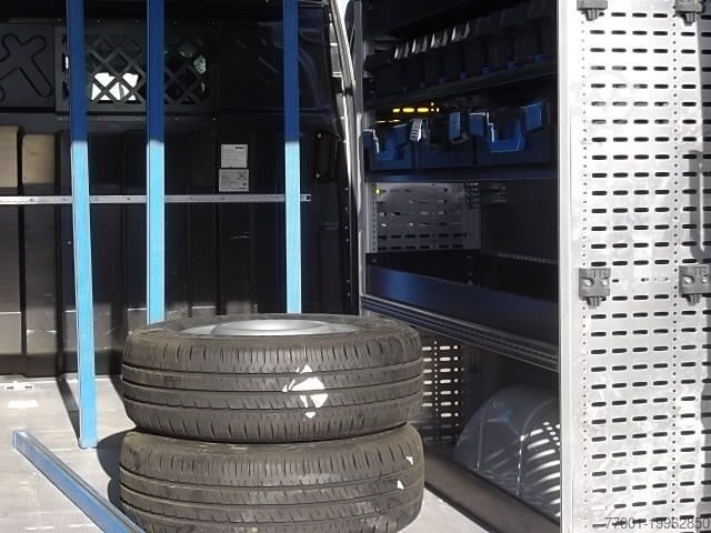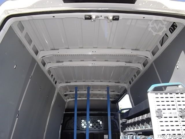 Color: White IC 194, unladen weight: 2,444 kg, permissible total weight: 3,500 kg, cargo area (L x W x H): 3,540 mm x 1,740 mm x 1,900 mm, cargo volume: 11 m³, leaf suspension, 1 x airbag, trailer coupling preparation, Electronic Stability Program (ESP), automatic climate control, driver’s seat with hydraulic suspension, seat heating, radio, rear-view camera, multifunction steering wheel, power steering, adjustable steering column, electric windows, fog lights, electrically adjustable and heated exterior mirrors, wide-angle mirror, central locking with remote control, storage package, partition with window, rear doors with 270° opening angle, right-hand side sliding door, daytime running lights, Sortimo vehicle interior fittings, side paneling, heating/sanitary conversion, load compartment floor with lashing rails, shelving system with case, 3 x tension rods, remote control for WEBASTO hot water heater, rubber floor mat in passenger compartment. Errors and changes excepted.