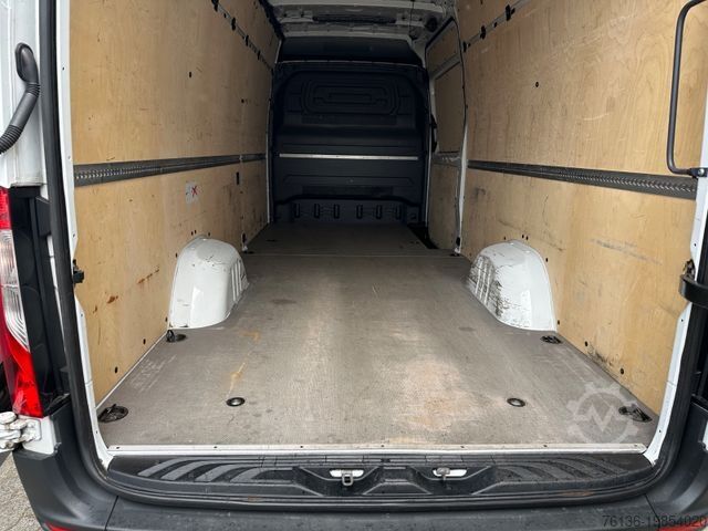 Third brake light, storage compartment above windscreen, storage compartment below dashboard on passenger side, adaptive brake light, driver's airbag, hill-start assist, traction control (ASR), washer fluid level indicator, electrically adjustable and heated exterior mirrors, both sides, outside temperature display, brake assist, automatic switch-on for driving lights, entry handle for sliding door on cargo partition, electronic brake force distribution (EBV), driver assistance system: breakdown management, driver assistance system: crosswind assist, chassis: stabilization level I, external noise suppression, body/superstructure: high-roof box van (standard), keyless start, child safety lock, communication module (LTE) for digital services, full-length cargo partition, steering wheel (mechanically adjustable steering column), headlight range control, truck registration, side marker lights, Mercedes-Benz emergency call system, engine 2.0 litre - 110 kW CDI CAT, wheelbase 4325 mm, low emissions according to Euro 6d standard, sliding door cargo/passenger area right, seatbelt system with warning indicator (passenger side), seatbelt system with warning indicator (driver's side), seat cover/upholstery: fabric, steel rims 6.5x16, engine start/stop system, AGM battery 92 Ah, service interval indicator Assyst, permissible gross weight 3.50 t