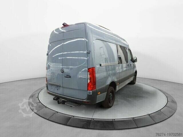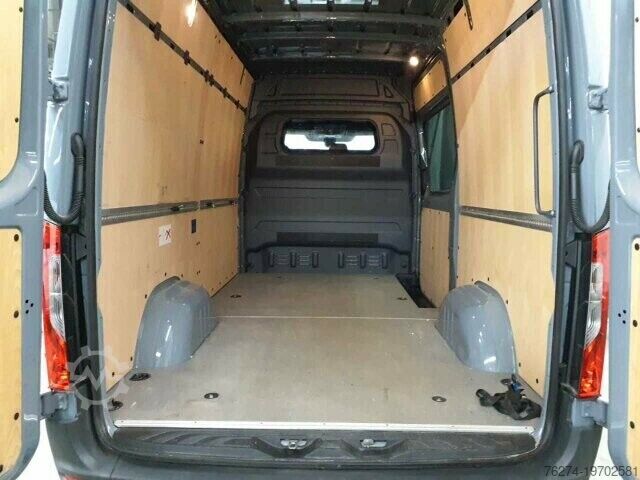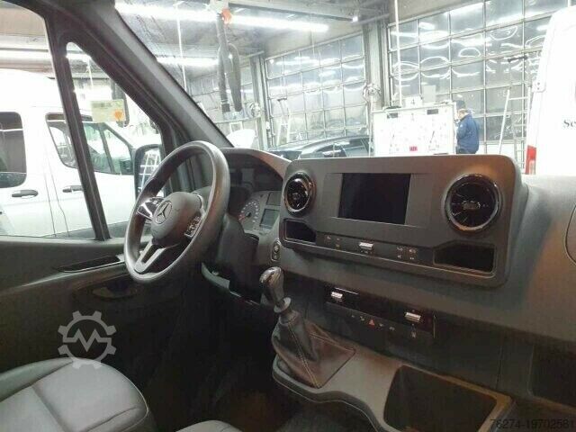 QA7 trailer coupling, for increased towing capacity 3.5 t, FR8 rear view camera, E07 hill start assist, LA2 headlight assistant, JG0 gear shift point indicator, JA8 crosswind assist, MJ8 ECO start-stop function, H12 auxiliary hot water heater, J65 outside temperature display, C6L multifunction steering wheel, VF6 Artico man-made leather in black, F68 heated and electrically adjustable exterior mirrors, T77 grab handle for loading area sliding door on partition, T16 sliding door on the right, IR4 wheelbase 3665 mm, SA5 driver airbag, E1D digital radio (DAB), S23 two-seater passenger seat, AR5 axle ratio i = 4.727, S22 armrest for driver's seat, S02 driver's seat, D03 high roof, E46 socket in driver's cab, D51 continuous partition with 1 window, IL5 left-hand drive, R87 spare wheel, RS3 steel wheels 6.5 J x 16, L65 ceiling light(s) LD/FG area with door contact, H20 heat-insulating glass all around, LE1 adaptive brake light, EY5 Mercedes-Benz emergency call system, IT4 3.5 tonner, GD8 6-speed manual transmission ECO Gear, KP7 SCR generation 4 emission control, MR0 emission level E (for heavy commercial vehicles), FF5 storage above windscreen, FJ4 storage compartment under cockpit, E43 13-pin trailer socket, IC1 C907 / C910 Sprinter series, IE0 C907 VS30 RWD series, XV1 reference mass of at least 2381 kg necessary, W70 tinted glazing in the rear, black glass, T86 entry handle on corner pillar at the rear right, M72 vehicle HVO capable, W17 window from. right, fixed in side wall/sliding door, Z4V manufactured in Düsseldorf, M60 generator 14 V / 250 A, XM1 noise measures, J55 seat belt warning device for front passenger, J58 seat belt warning device for driver's seat, HH9 semi-automatic air conditioning system TEMPMATIC, K13 main tank 71 liters, V43 wooden floor, Y43 hydraulic jack, VA2 interior paneling for cargo area up to roof height (wood), ZM0 panel van, FJ1 hinged lid for storage compartment, F1K coat hook in driver's cab, HI1 climate zone 1 (cold/comfort), JH3 communication module (LTE) for digital services, IK0 complete vehicle, CN2 radiator grille frame in body color, V95 cable duct on rear portal, V94 cable duct on side wall, CL1 steering wheel adjustable in tilt and height, Z2E country version EU - EFTA - UK, Q11 longitudinal member reinforcement, E3M MBUX multimedia system with 7 16-inch touchscreen, XO9 Mercedes-Benz MobiloVan with DSB and GgD, IG4 standard