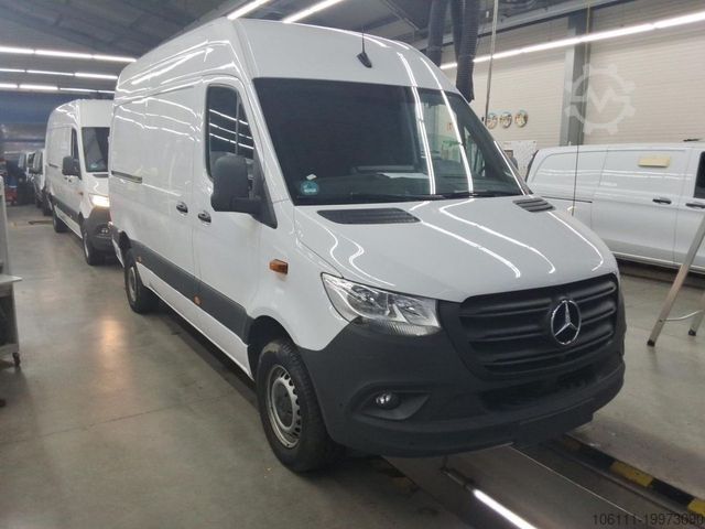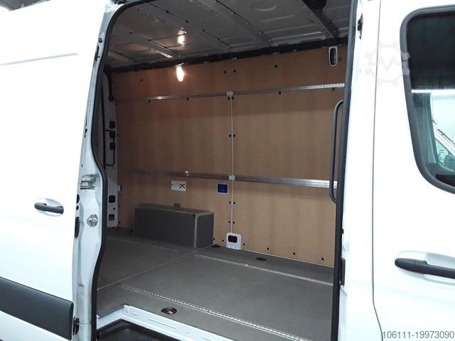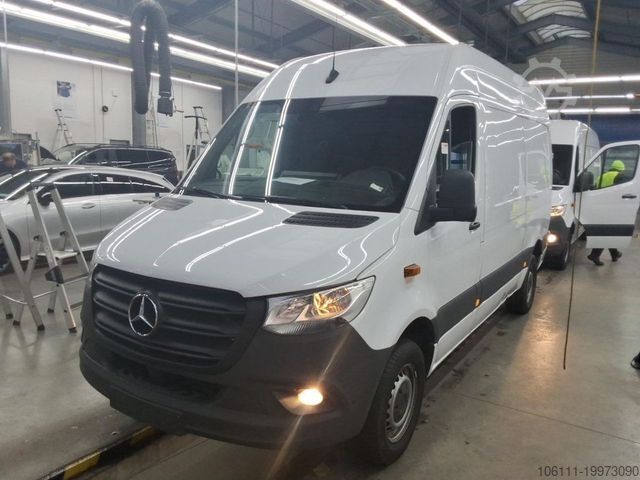 Third brake light, Overhead stowage above windscreen, Storage compartment below passenger side dashboard, Adaptive brake light, Driver's airbag, Traction control (ASR), Washer fluid level indicator, Electrically adjustable and heated exterior mirrors, both sides, Outside temperature display, Automatic headlight activation, Grab handle for sliding door on cargo area partition, Electronic brake force distribution (EBD), Driver assistance system: breakdown management, Driver assistance system: crosswind assist, External noise reduction measures, Body/superstructure: high roof panel van (Standard), Keyless start, Child safety lock, Communication module (LTE) for digital services, Full-height partition in cargo area, Steering wheel (mechanically adjustable steering column), Headlight range adjustment, Truck registration, Mercedes-Benz emergency call system, Engine 2.0 litres – 125 kW CDI CAT, Wheelbase 3665 mm, Low emissions according to Euro 6d standard, Sliding door on right-hand side of cargo/passenger compartment, Seat belt system with warning indicator (passenger side), Seat belt system with warning indicator (driver side), Seat cover/upholstery: fabric, Steel wheels 6.5x16, Engine start/stop system, AGM battery 92 Ah, Maintenance interval indicator Assyst, Heat-insulating glazing, Permissible gross vehicle weight 3.50 t
