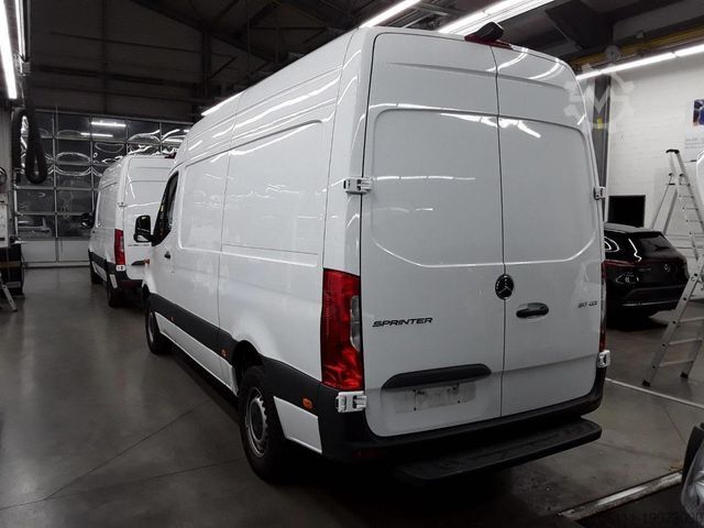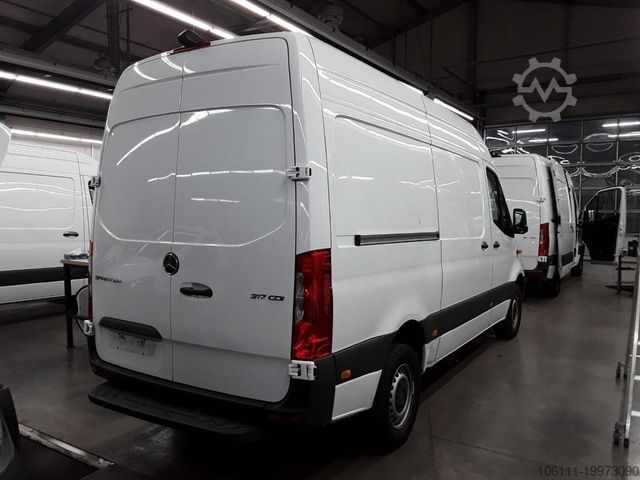 Overhead storage compartment in cab roof, Acoustic package, Trailer coupling: wiring for trailer socket, Electrically folding exterior mirrors, Exterior mirrors without integrated indicator, Front side indicators, DAB tuner (digital radio reception), Ceiling light in cargo area with motion sensor, Driver assistance system: active brake assist, Suspension: Stabilisation level I, All-weather floor mats, Vehicle without lowering function, 250 A alternator, Rear doors (opening angle 270 degrees), Wooden floor in cargo area, Inductive charging tray for smartphone (wireless charging), Interior: air vents in instrument panel, Folding lid for storage compartment, Comfort lighting in passenger/cargo compartment, Fuel tank with misfuelling protection, Main fuel tank 93 litres, Dashboard charging package (USB ports and additional 12V socket), Cargo compartment package 2, Conduit on sidewall, Side marker lights, Multimedia system MBUX (7" touchscreen), Navigation system for MBUX multimedia system, Fog lights with cornering function, Parking package with 360° camera, Load securing rail system, Cab seats: double passenger seat, Cab seats: heated passenger seat, Cab seats: heated driver’s seat, Cab seats: comfort suspension seat driver’s side, Cab seats: low seat base for driver’s seat, 12V socket in cab, Red fuel cap, Step for rear door, Trim in cargo/FG compartment: loadable wheel arch trim (wood), Lashing rails in cargo area – sidewall at roof frame, Reinforced front axle