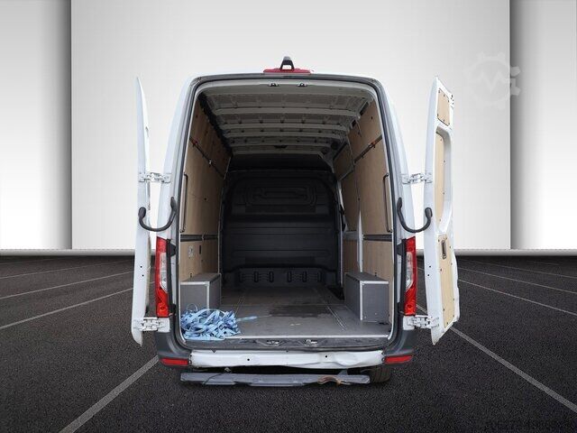 Rear step, interior paneling, wooden loading floor, double passenger seat, disc brake, length type L2, height type H2, high roof, air seat, touchscreen, partition wall, accident damaged, clock & rev counter, brake pad indicator, 360 degree camera, heat-insulating glass, 3-door, 1st hand, Euro6d_Temp, green environmental sticker (4), breakdown kit, steel rims, reversing camera, black, 6-speed gearbox, sliding door right, navigation with screen, color monitor for navigation system, parking sensors front, parking sensors rear, parking sensors, parking aid, parking aid camera, 2 electric windows, heated seats, radio, radio/MP3, MP3 interface, outside temperature display, tinted glass, heated exterior mirrors, power steering, wood interior, electric exterior mirrors, brake assist, comfort seats, rear-wheel drive, 3rd brake light, country version Germany, other equipment available, errors and prior sale excepted. Trade-in possible. Financing possible, please contact us. Contact us, we will create a tailor-made offer for you. A50 Front axle with increased load capacity AR2 Axle ratio i = 3.923 BA3 Active Brake Assist C6L Multifunction steering wheel CB7 Stabilization Stage I CL1 Steering wheel adjustable in tilt and height CT1 Vibration damper D03 High roof D50 Continuous partition wall E1B Storage for smartphones including wireless charging E1D Digital radio (DAB) E1E Navigation E3M MBUX multimedia system with 7 inch touchscreen E46 Socket in driver's cab E57 Electrics for trailer socket ES5 Charging package for instrument panel EY2 Live Traffic Information EY5 Mercedes-Benz emergency call system EY6 Breakdown management F64 Electrically folding exterior mirrors F68 Heated and electrically adjustable exterior mirrors FF4 Storage compartment above roof lining FF5 Storage above windscreen FJ1 Hinged lid for storage compartment FJ4 Storage compartment under cockpit FZ5 Burglar and theft alarm system GD8 6-speed manual transmission ECO Gear 360 H15 Seat heating for front passenger H16 Seat heating for Driver H20 Heat-insulating glass all around HH9 SEMI-AUTOMATIC