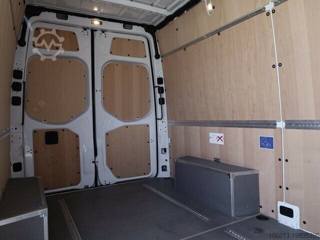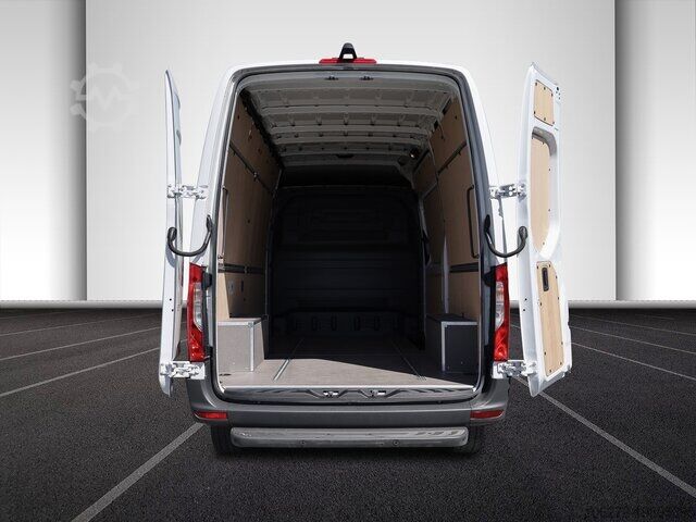 Rear step, interior paneling, wooden loading floor, double passenger seat, disc brake, length type L2, height type H2, high roof, air seat, touchscreen, partition wall, accident damaged, clock & rev counter, brake pad indicator, 360 degree camera, heat-insulating glass, 3-door, 1st hand, Euro6d_Temp, green environmental sticker (4), breakdown kit, steel rims, reversing camera, black, 6-speed gearbox, sliding door right, navigation with screen, color monitor for navigation system, parking sensors front, parking sensors rear, parking sensors, parking aid, parking aid camera, 2 electric windows, heated seats, radio, radio/MP3, MP3 interface, outside temperature display, tinted glass, heated exterior mirrors, power steering, wood interior, electric exterior mirrors, brake assist, comfort seats, rear-wheel drive, 3rd brake light, country version Germany, other equipment available, errors and prior sale excepted. Trade-in possible. Financing possible, please contact us. Contact us, we will create a tailor-made offer for you. A50 Front axle with increased load capacity AR2 Axle ratio i = 3.923 BA3 Active Brake Assist C6L Multifunction steering wheel CB7 Stabilization Stage I CL1 Steering wheel adjustable in tilt and height CT1 Vibration damper D03 High roof D50 Continuous partition wall E1B Storage for smartphones including wireless charging E1D Digital radio (DAB) E1E Navigation E3M MBUX multimedia system with 7 inch touchscreen E46 Socket in driver's cab E57 Electrics for trailer socket ES5 Charging package for instrument panel EY2 Live Traffic Information EY5 Mercedes-Benz emergency call system EY6 Breakdown management F64 Electrically folding exterior mirrors F68 Heated and electrically adjustable exterior mirrors FF4 Storage compartment above roof lining FF5 Storage above windscreen FJ1 Hinged lid for storage compartment FJ4 Storage compartment under cockpit FZ5 Burglar and theft alarm system GD8 6-speed manual transmission ECO Gear 360 H15 Seat heating for front passenger H16 Seat heating for Driver H20 Heat-insulating glass all around HH9 SEMI-AUTOMATIC