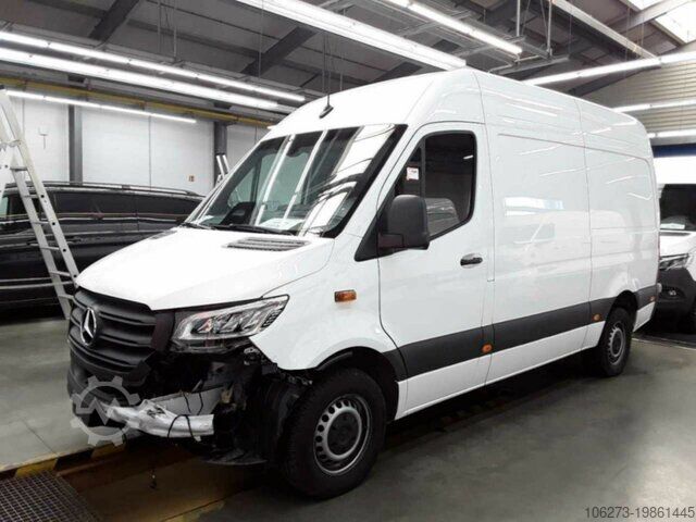 Rear step, interior trim, wooden load floor, double passenger seat, disc brakes, high roof, right mirror electrically adjustable, air suspension seat, touchscreen, partition wall, accident damaged, clock & tachometer, brake pad wear indicator, heat-insulating glass, active headrests, 3-door, 1 owner, Euro 6e, green environmental sticker (4), roadside repair kit, wireless smartphone charging, steel rims, reversing camera, black, passenger airbag, right sliding door, navigation with color monitor, color monitor for navigation system, paddle shifters, front parking sensors, rear parking sensors, rearview camera, traction control, power windows (2), seat heating, radio/MP3, outside temperature display, tinted glass, heated exterior mirrors, power steering, wood trim, electric exterior mirrors, brake assist, comfort seats, rear-wheel drive, third brake light, center armrest, German version, further equipment available, errors and prior sale excepted, trade-in possible, financing possible—please contact us for a customized offer. A50 front axle with increased load capacity AR2 axle ratio i = 3.923 BA3 Active Brake Assist BH1 HOLD function C6L multifunction steering wheel CL1 steering wheel adjustable for tilt and height CT1 vibration damper D03 high roof D50 full partition wall E07 hill start assist E1B smartphone tray incl. wireless charging E1D digital radio (DAB) E1E navigation E1U USB socket 5V E46 socket in driver’s cab E57 trailer socket wiring E7M MBUX multimedia system ES0 jump-start connection ES5 dashboard charging package EY2 live traffic information EY5 Mercedes-Benz emergency call system EY6 roadside assistance management F2W winter package F64 electric folding exterior mirrors F68 heated and electrically adjustable exterior mirrors FF4 overhead storage compartment FF5 storage above windscreen FJ1 hinged lid for stowage compartment FJ4 under-cockpit stowage FM3 WET WIPER SYSTEM FZ5 anti-theft alarm system G43 9G-TRONIC H15