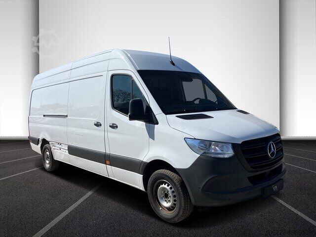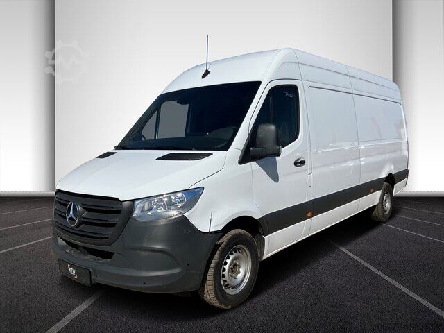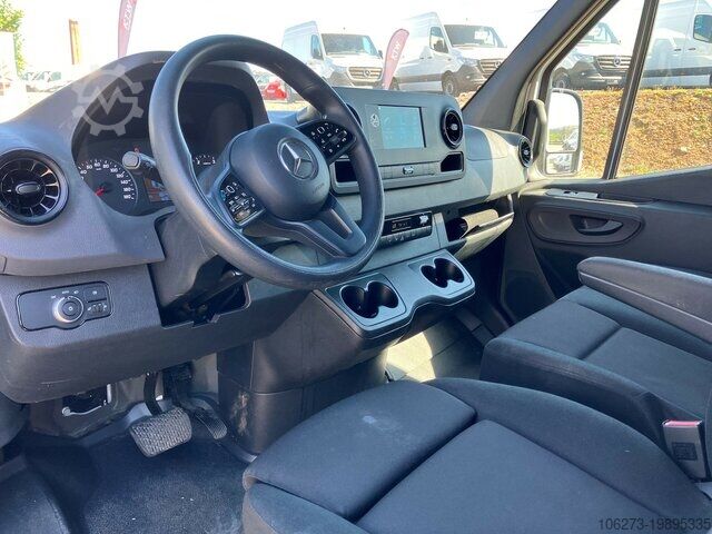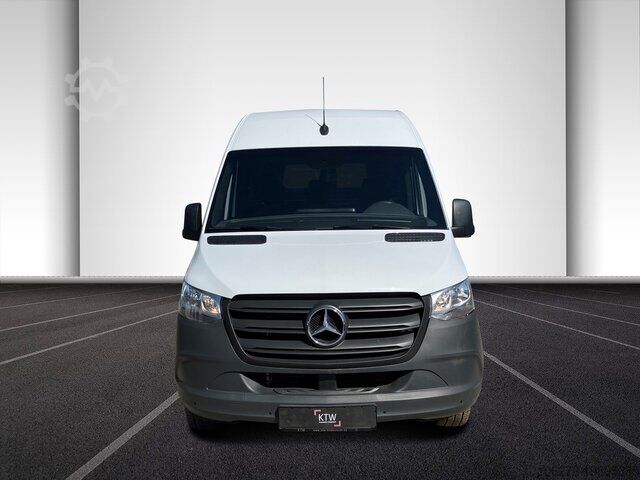 Rear step, interior paneling, wooden loading floor, passenger double seat, disc brake, high roof, right-hand mirror electrically adjustable, air seat, partition wall, tachograph, clock & rev counter, brake pad indicator, 3-door, 1st hand, Euro6d, green environmental sticker (4), Apple CarPlay, Android Auto, spare wheel, steel rims, reversing camera, black, passenger airbag, sliding door right, parking aid, parking aid camera, 2-way electric window lifter, seat heating, radio/MP3, outside temperature display, tinted glass, heated outside mirrors, power steering, wood trim, electric outside mirrors, comfort seats, rear-wheel drive, 3rd brake light, center armrest, country version Germany, other equipment available, errors and prior sale reserved. Trade-in possible. Financing possible, please contact us, we will make you a tailor-made offer. A50Front axle with increased load capacity AR2Axle ratio i = 3.923 BA3Active brake assist BH1HOLD function C6LMultifunction steering wheel CL1Steering wheel adjustable in inclination and height D03High roof D5Partition wall with 1 window E07Hill start assist E1DDigital radio (DAB) E1UUSB socket 5 V E3MMBUX multimedia system with 7 inch touchscreen E43Trailer socket 13-pin ED8Electrics preparation, parameterizable special module ES0Start assistance - contact ES5Instrument panel charging package EW6Remote Services Plus preparation EY5Mercedes-Benz emergency call system EY6Breakdown management F68Heated and electrically adjustable outside mirrors FF5Storage above windscreen FG8Cup holder at front FJ4Storage compartment under cockpit FZ5Burglary and theft alarm system G439G-TRONIC H16Seat heating for driver H1BTachograph control in front under roof lining H21Heated glass with band filter on the windscreen HH9Semi-automatic air conditioning system TEMPMATIC IRWheelbase 4325 mm, overhang 1615 mm IT43.5 tonne J55Seat belt warning device for passenger seat J58Seat belt warning device for driver seat J65Outside temperature display JA8Crosswind assist JB7Parking package with rear view camera JD6Inte