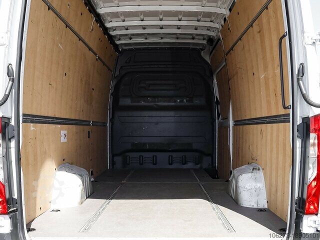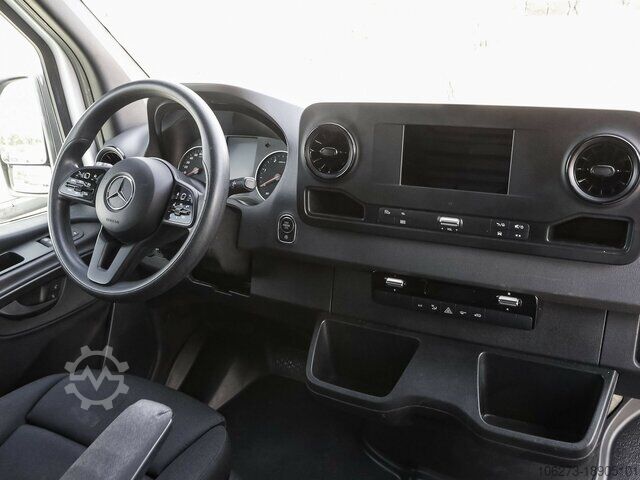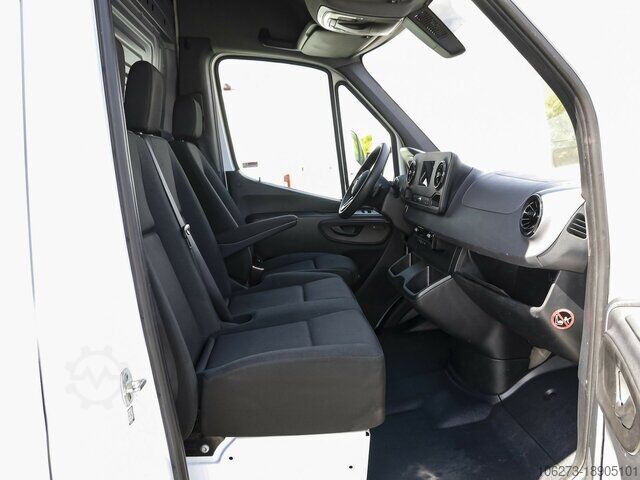 Rear step, interior paneling, wooden loading floor, passenger double seat, disc brake, high roof, right-hand mirror electrically adjustable, air seat, partition wall, clock & rev counter, brake pad indicator, heat-insulated glass, 3-door, 1st hand, Euro6d, green environmental sticker (4), breakdown kit, steel rims, reversing camera, black, passenger airbag, right-hand sliding door, parking aid, parking aid camera, 2-way electric window lifter, seat heating, radio/MP3, outside temperature display, tinted glazing, heated outside mirrors, power steering, wood trim, electric outside mirrors, comfort seats, rear-wheel drive, 3rd brake light, center armrest, country version Germany, other equipment available, errors and prior sale reserved. Trade-in possible. Financing possible, please contact us, we will make you a tailor-made offer. A50Front axle with increased load capacity AR2Axle ratio i = 3.923 BH1HOLD function C6LMultifunction steering wheel CB7Stabilization level I CL1Steering wheel adjustable in inclination and height CN2Radiator grille frame in vehicle color D03High roof D50Partition wall throughout E07Hill start assist E1DDigital radio (DAB) E30Single-pole battery main switch E3MMBUX multimedia system with 7-inch touchscreen E57Electrics for trailer socket ES0Start-up aid - contact ES5Instrument panel charging package EW6Remote Services Plus preparation EY5Mercedes-Benz emergency call system EY6Breakdown management F68Heated and electrically adjustable outside mirrors FF5Storage above windscreen FJ4Storage compartment under cockpit FZ5Burglary and theft alarm system G439G-TRONIC H16Seat heating for driver H20Heat-insulating glass all around HH9Semi-automatic control Air conditioning TEMPMATIC IR6Wheelbase 4325 mm, overhang 1615 mm IT43.5 tonne J55Seat belt warning device for front passenger seat J58Seat belt warning device for driver seat J65Outside temperature display JA8Crosswind assist JB7Parking package with rear view camera JF1Rain sensor JH3Communication module (LTE) for digital services JK5Instrument cluster with colour display K13Main tank 71 litres K51Misfuelling