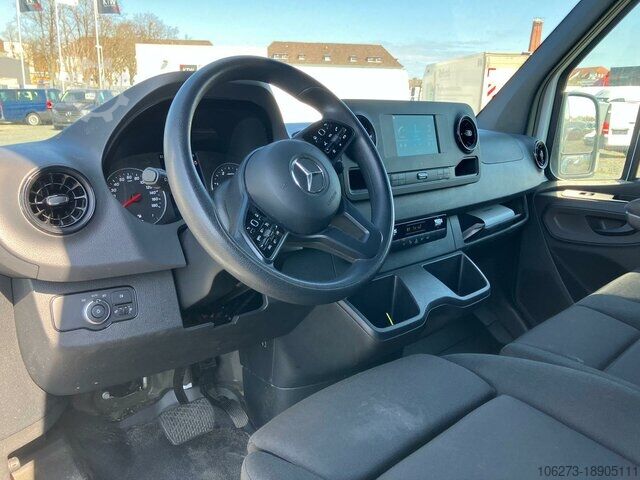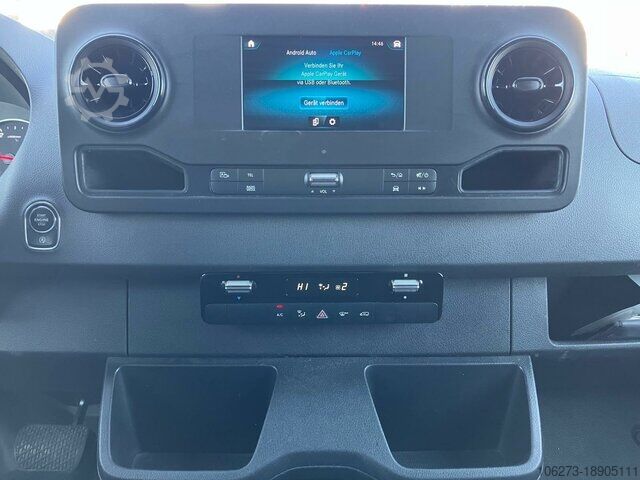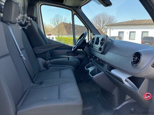 Rear step, interior paneling, wooden loading floor, passenger double seat, disc brake, high roof, right-hand mirror electrically adjustable, air seat, partition wall, clock & rev counter, brake pad indicator, heat-insulated glass, 3-door, 1st hand, Euro6d, green environmental sticker (4), breakdown kit, steel rims, reversing camera, black, passenger airbag, right-hand sliding door, parking aid, parking aid camera, 2-way electric window lifter, seat heating, radio/MP3, outside temperature display, tinted glazing, heated outside mirrors, power steering, wood trim, electric outside mirrors, comfort seats, rear-wheel drive, 3rd brake light, center armrest, country version Germany, other equipment available, errors and prior sale reserved. Trade-in possible. Financing possible, please contact us, we will make you a tailor-made offer. A50Front axle with increased load capacity AR2Axle ratio i = 3.923 BH1HOLD function C6LMultifunction steering wheel CB7Stabilization level I CL1Steering wheel adjustable in inclination and height CN2Radiator grille frame in vehicle color D03High roof D50Partition wall throughout E07Hill start assist E1DDigital radio (DAB) E30Single-pole battery main switch E3MMBUX multimedia system with 7-inch touchscreen E57Electrics for trailer socket ES0Start-up aid - contact ES5Instrument panel charging package EW6Remote Services Plus preparation EY5Mercedes-Benz emergency call system EY6Breakdown management F68Heated and electrically adjustable outside mirrors FF5Storage above windscreen FJ4Storage compartment under cockpit FZ5Burglary and theft alarm system G439G-TRONIC H16Seat heating for driver H20Heat-insulating glass all around HH9Semi-automatic control Air conditioning TEMPMATIC IR6Wheelbase 4325 mm, overhang 1615 mm IT43.5 tonne J55Seat belt warning device for front passenger seat J58Seat belt warning device for driver seat J65Outside temperature display JA8Crosswind assist JB7Parking package with rear view camera JF1Rain sensor JH3Communication module (LTE) for digital services JK5Instrument cluster with colour display K13Main tank 71 litres K51Misfuelling