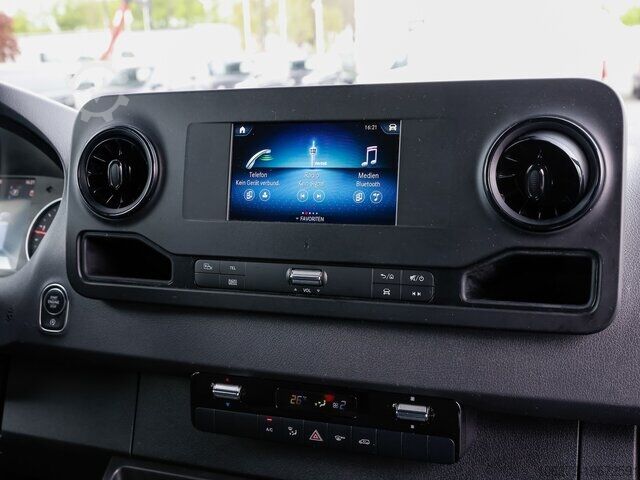 Rear step, interior paneling, wooden loading floor, passenger double seat, disc brake, high roof, right-hand mirror electrically adjustable, air seat, partition wall, clock & rev counter, brake pad indicator, heat-insulated glass, 3-door, 1st hand, Euro6d, green environmental sticker (4), breakdown kit, steel rims, reversing camera, black, passenger airbag, right-hand sliding door, parking aid, parking aid camera, 2-way electric window lifter, seat heating, radio/MP3, outside temperature display, tinted glazing, heated outside mirrors, power steering, wood trim, electric outside mirrors, comfort seats, rear-wheel drive, 3rd brake light, center armrest, country version Germany, other equipment available, errors and prior sale reserved. Trade-in possible. Financing possible, please contact us, we will make you a tailor-made offer. A50Front axle with increased load capacity AR2Axle ratio i = 3.923 BH1HOLD function C6LMultifunction steering wheel CB7Stabilization level I CL1Steering wheel adjustable in inclination and height CN2Radiator grille frame in vehicle color D03High roof D50Partition wall throughout E07Hill start assist E1DDigital radio (DAB) E30Single-pole battery main switch E3MMBUX multimedia system with 7-inch touchscreen E57Electrics for trailer socket ES0Start-up aid - contact ES5Instrument panel charging package EW6Remote Services Plus preparation EY5Mercedes-Benz emergency call system EY6Breakdown management F68Heated and electrically adjustable outside mirrors FF5Storage above windscreen FJ4Storage compartment under cockpit FZ5Burglary and theft alarm system G439G-TRONIC H16Seat heating for driver H20Heat-insulating glass all around HH9Semi-automatic control Air conditioning TEMPMATIC IR6Wheelbase 4325 mm, overhang 1615 mm IT43.5 tonne J55Seat belt warning device for front passenger seat J58Seat belt warning device for driver seat J65Outside temperature display JA8Crosswind assist JB7Parking package with rear view camera JF1Rain sensor JH3Communication module (LTE) for digital services JK5Instrument cluster with colour display K13Main tank 71 litres K51Misfuelling