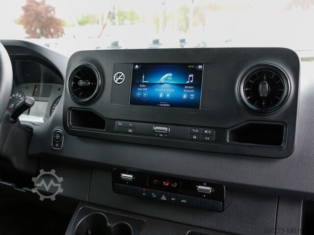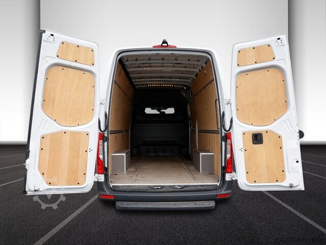 Rear step, interior trim, wooden load floor, double passenger seat, disc brakes, extra-long, high roof, right mirror electrically adjustable, partition wall, clock & tachometer, brake pad wear indicator, heat-insulating glass, 3-door, one owner, Euro 6d, green emission sticker (4), spare wheel, steel rims, reversing camera, black, passenger airbag, sliding door right, parking assist, parking assist camera, electric windows (2), seat heating, radio/MP3, outside temperature display, tinted glass, heated exterior mirrors, power steering, wood trim, electric exterior mirrors, brake assist, comfort seats, rear-wheel drive, third brake light, center armrest, German market specifications, further equipment available, errors and prior sale excepted, trade-in possible, financing possible, please contact us for a tailored offer. A50 Front axle with increased load capacity, AR2 Axle ratio i = 3.923, BA3 Active Brake Assist, BH1 HOLD function, C6L Multi-function steering wheel, CB7 Stabilization level I, CL1 Steering wheel adjustable for tilt and height, CW2 Vehicle lowering omitted, D03 High roof, D51 Full partition wall with one window, E07 Hill start assist, E1D Digital radio (DAB), E1U USB port 5 V, E3M MBUX multimedia system with 7-inch touchscreen, E57 Wiring for trailer socket, E5M Expansion PSM standard interface, ED8 Electrical preparation, programmable special module, ES0 Jump-start terminal, ES5 Instrument panel charging package, EW6 Pre-installation for Remote Services Plus, EY5 Mercedes-Benz emergency call system, EY6 Breakdown management, F68 Heated and electrically adjustable exterior mirrors, FF5 Overhead storage above windscreen, FG8 Front cupholders, FJ4 Storage compartment under dashboard, FZ Anti-theft alarm and burglary warning system, G439 G-TRONIC, H16 Seat heating for driver, H21 Heat-insulating glass with band filter in the windscreen, HH9 Semi-automatic TEMPMATIC air conditioning, HI1 Climate zone 1 (cold/comfort), IR6 Wheelbase 4325 mm, rear overhang 1615 mm, IT4 3.5-tonner, J55 Seatbelt warning device for passenger seat, J58 Seatbelt warning device for driver seat, J65 Outside temperature display.