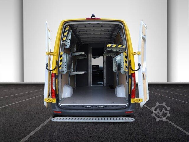 Rear step, interior paneling, wooden loading floor, disc brakes, extra long, high roof, right-hand mirror electrically adjustable, air seat, partition wall, accident damaged, clock & rev counter, brake pad indicator, heat-insulating glass, 3-door, 1st hand, Euro6d_Temp, green environmental sticker (4), breakdown kit, induction charging for smartphones, steel rims, distance warning, reversing camera, black, 6-speed gearbox, sliding door right, navigation with color monitor, color monitor for navigation system, parking aid, parking aid camera, 2 electric windows, heated seats, radio/MP3, MP3 interface, outside temperature display, tinted glass, heated exterior mirrors, power steering, wood interior, electric exterior mirrors, comfort seats, rear-wheel drive, 3rd brake light, center armrest, country version Germany, other equipment available, errors and prior sale excepted. Trade-in possible. Financing possible, please contact us, we will put together a tailor-made offer for you. A50 Front axle with increased load capacity AR3 Axle ratio i = 4.182 C6L Multifunction steering wheel CB7 Stabilization stage I CL1 Steering wheel adjustable in tilt and height CT1 Vibration damper D03 High roof D64 Partition with sliding door E07 Hill start assist E1D Digital radio (DAB) E1E Navigation E3M MBUX Multimedia system with 7 inch touchscreen E57 Electrics for trailer socket ED4 Fleece battery 12 V 92 Ah EK1 Terminal block for electrical connection ES0 Jump start - contact EY2 Live Traffic Information EY5 Mercedes-Benz emergency call system EY6 Breakdown management F68 Exterior mirrors, heated and electrically adjustable FF5 Storage above windscreen FG8 Cup holder, front FJ4 Storage compartment under cockpit FR8 Rear view camera FU5 Exterior mirrors without indicators GD8 6-speed manual transmission ECO Gear 360 H20 Heat-insulating glass all around HH9 SEMI-AUTOMATIC AIR CONDITIONING TEMPMATIC IR6 Wheelbase 4325 mm, overhang 1615 mm IT4 3.5 ton J65 Outside temperature indicator JA8 Crosswind assist JG0 Shift point indicator JI7 Take-off run Maintenance interval 60,000