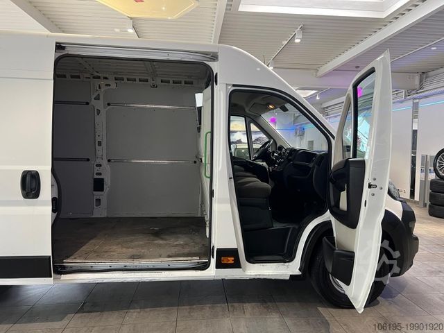 Driver's airbag, wide-angle exterior mirrors, load compartment floor panel, on-board computer, safety/driver assistance system: emergency braking assistant, rear wing doors without windows, body/conversion: high-roof panel van, padded headrests, fuel tank: 90 liters, engine 2.0L – 120 kW Blue-HDI FAP CAT, radio-ready, 4 speakers, wheelbase 4,035 mm, full-size spare wheel, low emissions per Euro 6 standard, rear disc brakes, right side sliding door (cargo/passenger compartment), SCR system (AdBlue technology), side protection strips, seat cover/upholstery: fabric, cabin seats: front double passenger seat (incl. automatic seatbelt), cabin seats: driver’s seat with armrest, height-adjustable, driver’s seat with lumbar support, permissible gross weight 3,500 kg