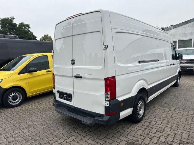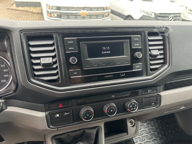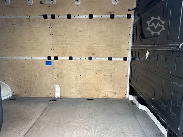 Driver’s side airbag, left convex exterior mirror, right convex exterior mirror, LED indicator lights integrated into exterior mirrors, rubber flooring in the cab, on-board tools, underbody aerodynamic paneling, twin headlights, dual-tone horn, entry handle on left rear pillar, entry handle on right rear pillar, assistance system: hill start assist, assistance system: brake assist (HBA), assistance system: crosswind assist, electric front windows, laminated windscreen, folding remote control keys (2), A-pillar grab handles, rear wing doors without windows, LED interior lights in cab, LED interior lights in loading/passenger area, body/type: standard high roof panel van, body variant: high roof in vehicle colour, fuel tank: 75 litres, radiator grille with upper chrome strip, full-height solid partition wall to cargo area, adjustable steering column (steering wheel), headlight range adjustment, truck registration, side marker lights, engine: 2.0 l – 103 kW TDI, Multifunction Display Plus, rear fog light, wheelbase 4,490 mm, tyre repair kit, low emissions according to Euro 6d-TEMP standard, right sliding door to load/passenger compartment, SCR system (AdBlue technology), electro-mechanical power steering, seat upholstery: fabric, passenger seat adjustable in cab, start/stop engine system, 12V power sockets in cab (2 pcs.), front bumper in grey with panel in vehicle colour, lashing rings in cargo area, driver's seatbelt warning system, heat-insulating glazing, central locking with remote control and interior switch, permitted gross vehicle weight 3.5 t.
