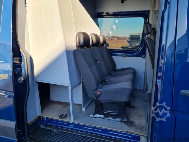 Trailer coupling up to 3.5 tonnes. Body variant: High roof, automatic air conditioning, trailer coupling (ball head) for increased towing capacity, digital tachograph, central locking with remote control, electric windows, rear view camera, spare wheel in standard tires, all-season tires, RSD 2000 audio system (front speakers), Bluetooth mobile phone interface, long wheelbase, heat-insulating glass, storage package, tachometer, driver's side airbag, anti-lock braking system (ABS), traction control (ASR), Isofix mounts for child seat on rear seat, comfort seats, center armrest, height/angle adjustable rear headrests, particulate filter, sliding door to the right-hand side of the cargo/passenger compartment, electronic immobilizer, CB radio, tool kit and jack, outside temperature display, power steering, paint finish: steel blue, built-in shelves, work lights (6), rotating beacons, height-adjustable driver's comfort seat with armrest, step. rear right, entry handle on the rear pillar rear left, seats in the loading/vehicle compartment: 1st row - 3-seater bench seat - narrow, chassis: reinforced rear shock absorbers, plastic floor covering in the loading/passenger compartment, wooden floor covering in the loading compartment, winter tires, air conditioning, reinforced front axle, window in the loading/vehicle compartment: - fixed - front left, window in the loading/vehicle compartment: - fixed - front right, height/angle adjustable front headrests, suspension: comfort suspension at the rear, permissible total weight 3.50 t, additional brake light, side marker lights, storage compartments: flat tray/compartment - above the windscreen, entry handle on the rear pillar rear right, electronic. Stability Program (ESP), Driver Assistance System: Brake Assist (HBA), Rear Stabilizer, Reinforced Front Stabilizer, Body/Structure: High-capacity Box, Wheelbase 4325 mm, Drive Type: Rear-wheel Drive, 6-speed Transmission, Over 150 vans and buses in stock. Financing or leasing possible through Santander Consumer Bank, Bank 11 or Auto Europa Bank, we will be happy to advise you. This offer is non-binding, no guarantee for equipment details. Listed equipment may need to be checked separately. Subject to changes, errors and prior sale. Delivery possible for an additional charge. Export license plate available on site. Part exchange for your old vehicle. Retrofitting of: - Trailer hitches up to 3500 kg possible - Auxiliary heaters - Screen for rear view camera and or navigation via mobile phone (Android Auto) - Reversing system with rear camera - Workshop equipment - Cruise control - Retrofitting a LBW (tail lift) and other individual solutions for your business needs possible for an additional charge.