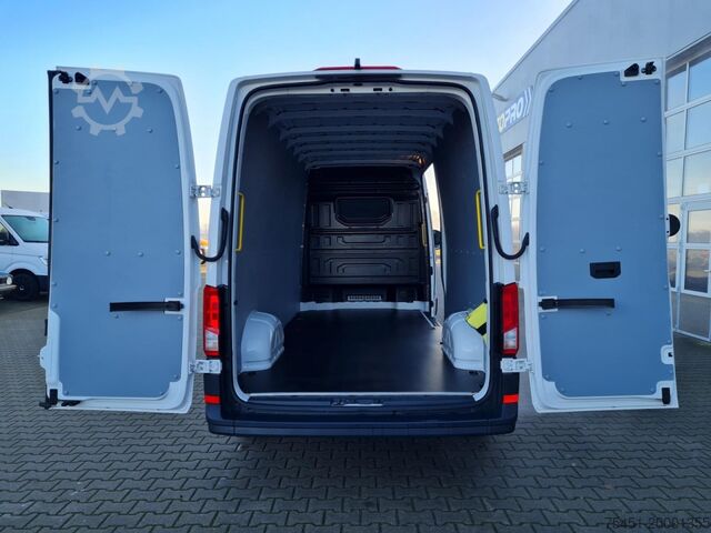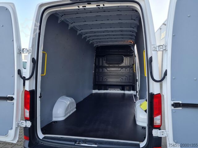 Body variant: High roof in body color, Climatic air conditioning, Central locking with remote control and interior operation, Electrically adjustable and heated exterior mirrors, Electric front windows, Multifunction display Plus, Hill start assist, Steering wheel with multifunction, Reversing camera, Partition wall, Spare wheel with driving tires incl. on-board tools and jack, Winter tires, Daytime running lights, Composition Colour audio system (radio / SD card and USB interface), Touchscreen, Bluetooth hands-free kit, Multimedia interface 2 x USB (type C) On-board tools and jack, Winter tires, Daytime running lights, Composition Colour audio system (radio / SD card and USB interface), Touchscreen, Bluetooth hands-free kit, Multimedia interface 2 x USB (type C) front, Mobile online services App-Connect, Emergency call system, Long wheelbase, Heat-insulating glazing, Storage package 2, Rev counter, Airbag driver's side, Anti-lock braking system (ABS), Electron. Stability Program (ESP), Paddle shifters on steering wheel, Engine start/stop system, Soot particle filter, Full service history, Sliding door right-hand loading/passenger compartment, Immobilizer (electronic), Headlight range control, On-board tool kit, Exterior temperature display, Electro-mechanical power steering, Paint finish: Candy white, Wooden loading floor with interior trim, Lashing eyes in load compartment, Lockable glove compartment, Front bumper in gray with trim in body color, Sockets (12 V connection) in cab (4 pieces), Double passenger seat with storage compartment and backrest foldable to storage table, Storage compartments: 2 DIN slots in front under headliner, Interior lights in cab: Reading light in front, Truck registration, Permissible gross vehicle weight 3. Gross vehicle weight 3.50 t, CW value underbody cladding, Radiator grille with chrome strip at top, Convex exterior mirrors - left, Convex exterior mirrors - right, Twin headlights, LED blinker lights integrated in exterior mirrors, Side marker lights, Floor covering in cab: Rubber, Access handle on rear pillar rear left, Access handle on rear pillar rear right, A-pillar grab handles, Folding radio key (2), Seat belt warning system (driver/passenger side), Interior lights in cab: LED, Interior lights in cargo/vehicle compartment: LED, Driving assistance system: Brake assist (HBA), Steering column (steering wheel) adjustable, Crosswind assist, SCR system (AdBlue technology), Body/bodywork: Box high body, Wheelbase 4490 mm, Drive type: Front-wheel drive, Gearbox 6-speed, Over 150 vans and buses in stock. Financing or leasing possible via Santander Consumer Bank, Bank 11 or Auto Europa Bank, we will be happy to advise you. This offer is non-binding, no guarantee for equipment details. Listed equipment may have to be checked separately. Subject to alterations, errors and prior sale. Delivery possible for an additional charge Export license plates here on site Trade-in of your old vehicle Retrofitting of: - Trailer couplings also possible up to 3500 kg - Parking heaters - Screen for reversing camera and/or navigation system via cell phone (Android Auto) - Reversing system with rear camera - Workshop equipment - Cruise control - Retrofitting of an LBW (tail lift) and other individual solutions for your business needs possible at extra cost.