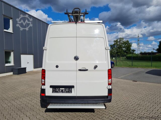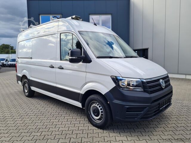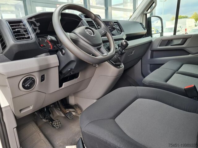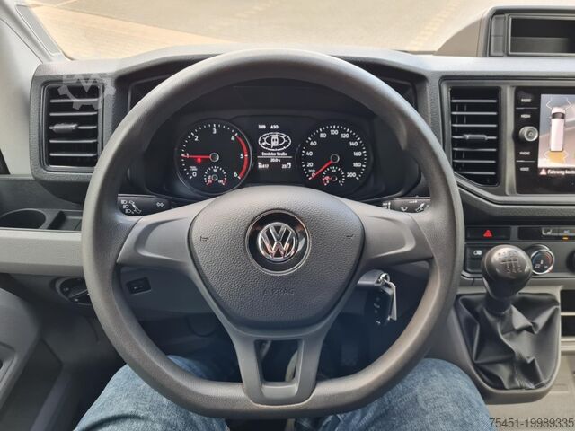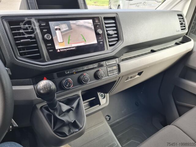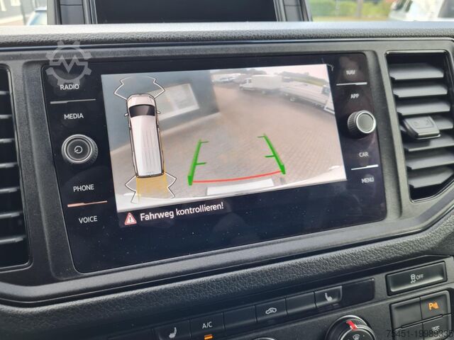 Body variant: High roof in vehicle color, Climatic air conditioning (driver's cab), central locking with remote control and interior operation, electrically adjustable and heated exterior mirrors, front electric windows, Multifunction Display Plus, driver assistance system: hill-start assist, driver assistance system: front and rear parking sensors, reversing camera, cargo partition with window, spare wheel with matching tire including vehicle toolkit and jack, daytime running lights, digital radio reception (DAB+), Discover Media Audio-Navigation System with Streaming & Internet (touchscreen - USB), touchscreen, Bluetooth mobile phone interface, MP3 interface, multimedia interface 2x USB (Type C) in front, voice control system, mobile online services App-Connect wired and wireless, emergency call system, heat-insulating glazing, Storage Package 2, seats in driver's cab: driver and passenger seat heated, driver airbag, driver/passenger side airbags – passenger airbag deactivatable, anti-lock braking system (ABS), electronic stability program (ESP), engine start/stop system, diesel particulate filter, sliding door load/passenger area right, electronic immobilizer, headlight range adjustment, on-board tools and jack, electro-mechanical power steering, trailer coupling preparation (socket and cable), paint: Candy White, ladder rack system, cargo/passenger compartment cladding: high wooden panels, lashing rails in the cargo area – at side wall, rear door hinges with extended opening angle, seats in driver's cab: double passenger seat with storage compartment, pre-equipment for tachograph and accident data recorder, driver assistance system: parking sensors front and rear with active side protection, storage: 2 DIN slot in front under headliner, interior lights driver's cab: front reading light, lockable glove box, trailer stabilization program, dashboard with additional console, truck registration, permitted gross vehicle weight 3.50 t, underbody drag coefficient covers, radiator grille with upper chrome strip, exterior mirror convex – left, exterior mirror convex – right, double headlights, LED indicators integrated in exterior mirrors, front bumper in grey, cabin floor covering: rubber, grab handle on rear left D-pillar, grab handle on rear right D-pillar, grab handles A-pillars, 2 folding remote keys, seat belt warning system (driver/passenger side), interior lights driver's cab: LED, interior lights cargo/passenger area: LED, twin-tone horn, 12V sockets in driver's cab (2 pcs), lashing rings in cargo area, driver assistance system: brake assist (HBA), steering column (steering wheel) adjustable, driver assistance system: crosswind assist, SCR system (AdBlue technology), body/structure: box high roof standard, wheelbase 3640 mm, drive type: front-wheel drive, 6-speed gearbox.
