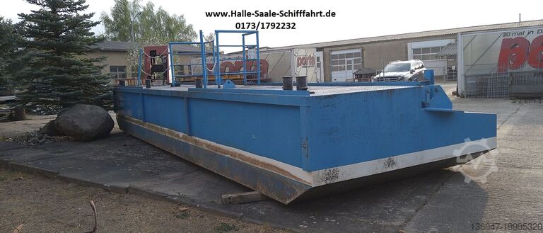 Длина 10 метров, ширина 3 метра, высота 1,20 м, осадка около 0,25 м. Вес около 8 тонн.