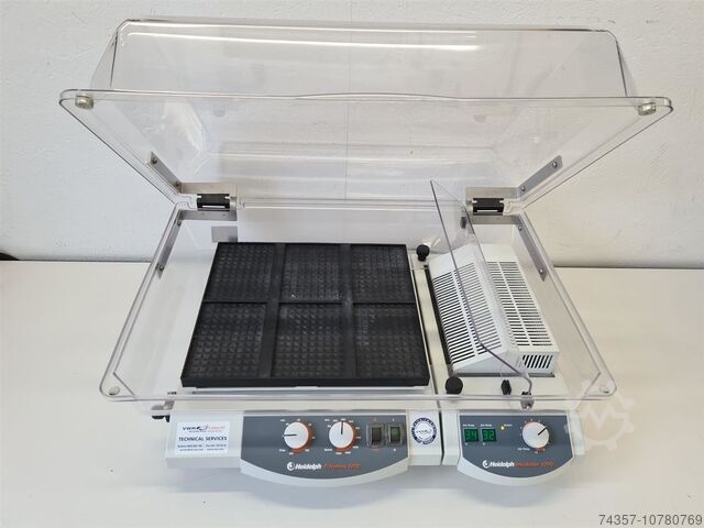 Данный Heidolph Titramax 1000/Inkubator 1000 представляет собой нагреватель и шейкер для микропланшетов со средней по размеру платформой. Обладает изолированной конструкцией, предотвращающей передачу тепла от двигателя, что исключает возможное термическое повреждение образцов. Инкубатор 1000 в комплекте с платформой Titramax 1000 и крышкой имеет общую высоту 260 мм.
