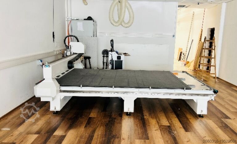 Оснащена фрезерным шпинделем для обработки по 3 осям. Дополнительно установлено осциллирующее тангенциальное лезвие, расширено до четвертой оси (вращающаяся ось). Кроме того, установлены два инструмента для выполнения косых резов под углом 45° по осям X и X. Идеально подходит, например, для акустических материалов, пенопласта, PU-плит, картона и т. д. Макс. длина ножа до 120 мм, диаметр хвостовика 6 мм.