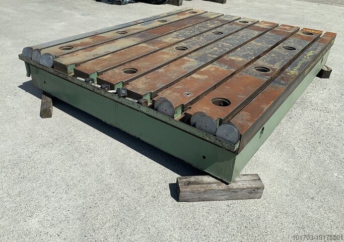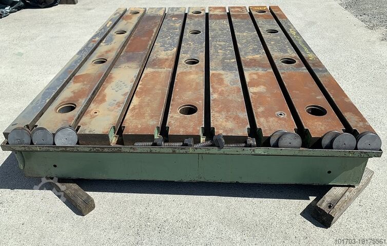 Чугунная станина 2600 x 2000 x 350 мм Длина: 2600 мм Ширина: 2000 мм Poc R Nc Ifjwlhfljnjpu Толщина: 350 мм 8 Т-образных пазов Размеры Т-образных пазов: 55 x 35 мм Расстояние между пазами: 250 мм Оборудован 12 выравнивающими ножками Вес: около 4,5 т