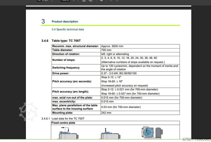 поворотный стол, индексный стол, позиционер WEISS Positioniertisch TC 700 T (3332)
