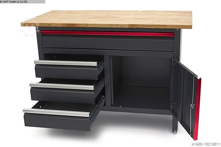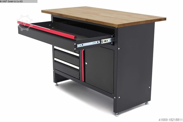 Верстак с 4 выдвижными ящиками и столешницей из массива дерева