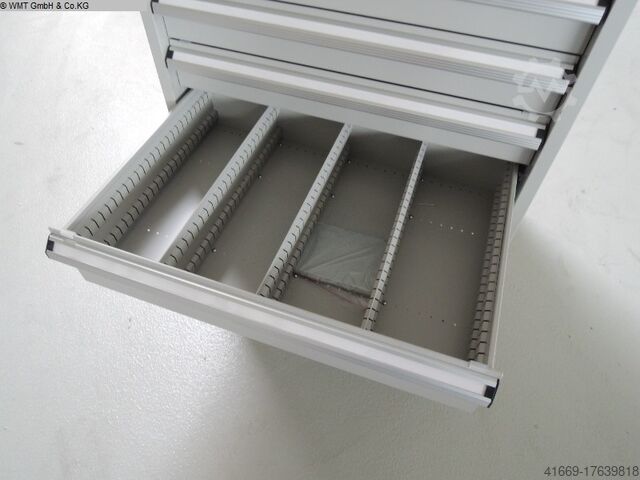 Прочный инструментальный шкаф с 8 выдвижными ящиками, запираемыми на ключ.