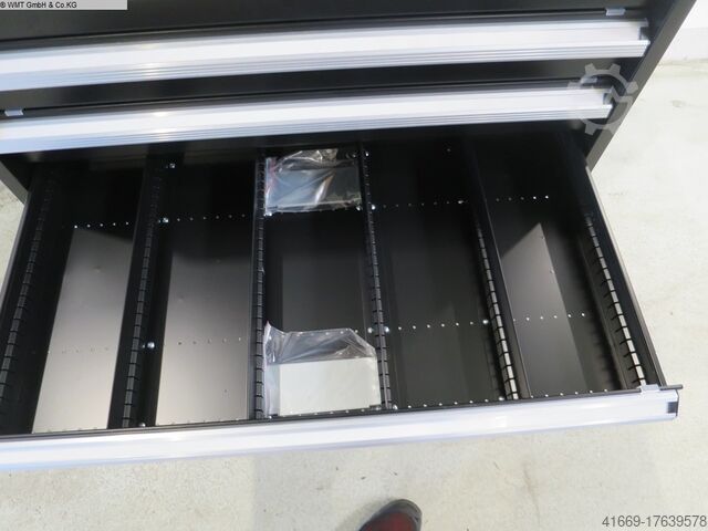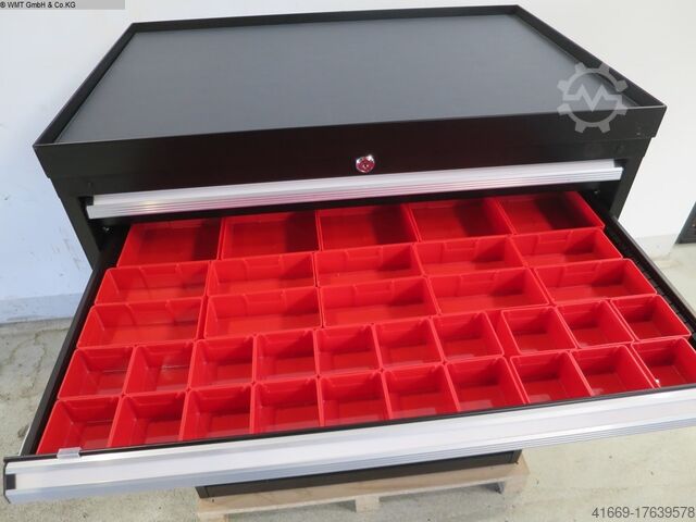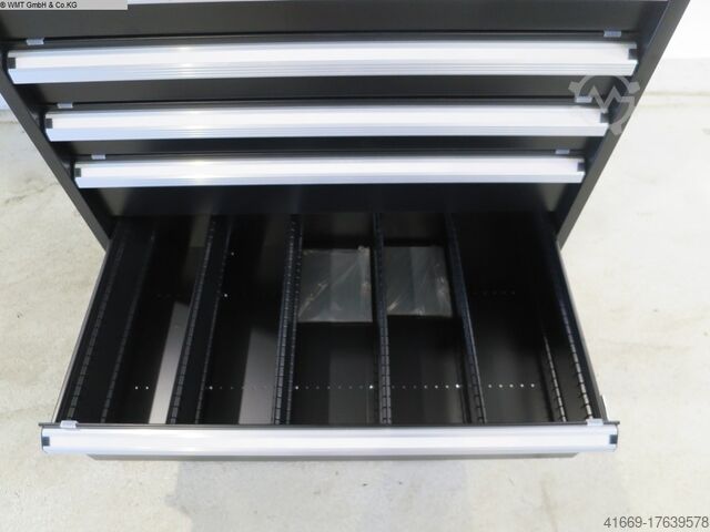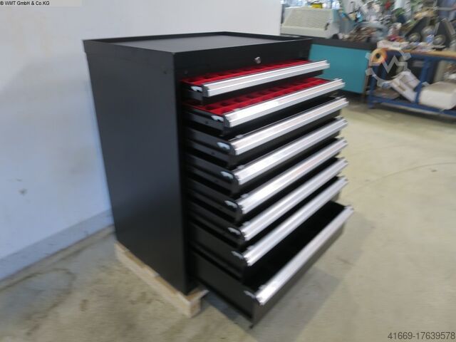 Прочный инструментальный шкаф с 8 выдвижными ящиками, запираемыми на ключ.