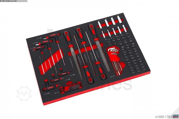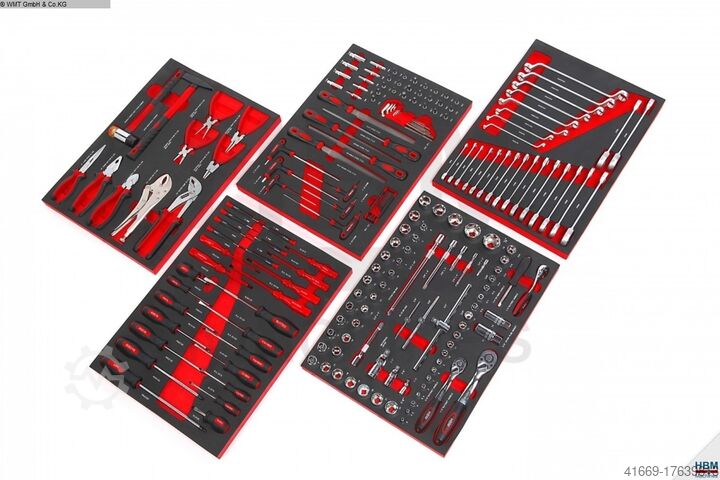 Тележка для инструментов оснащена 196 шт. инструментальными деталями: